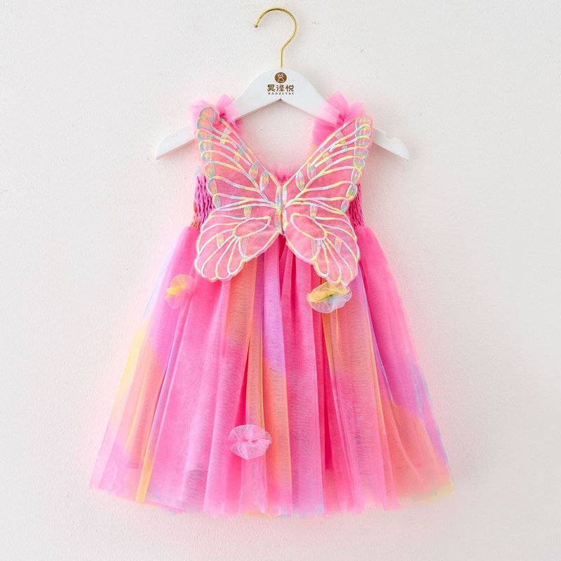 Kids Toddler Baby Girls Princess Rainbow Mesh Butterfly Fairy Dress