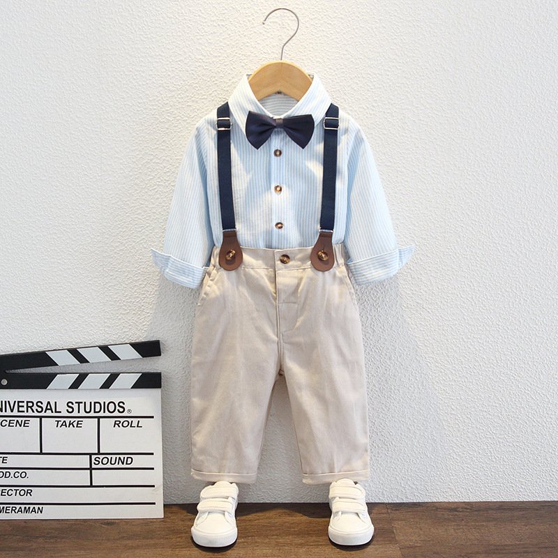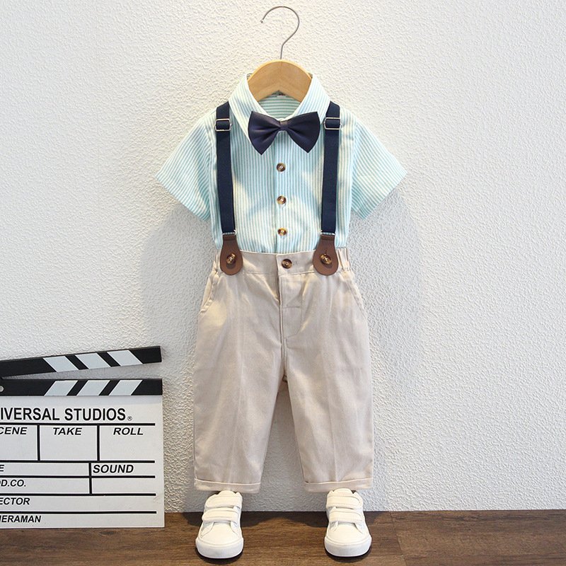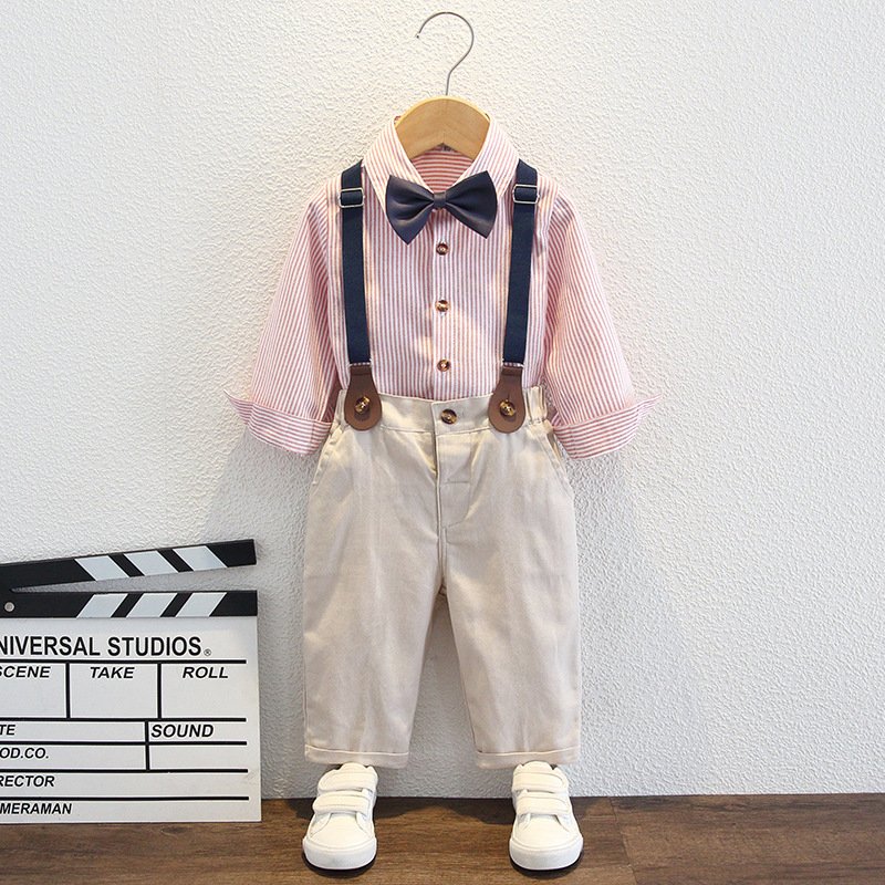 Kids Toddler Big Boys Fashion Casual British Style Solid Color Bow Button Stripe Waistcoat Shirt Suspender Trousers Party Clothing Set
