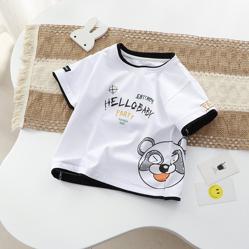 Kids Toddler Big Boys Girls Bear Cute Cartoon Print Short Sleeve Round Neck T-Shirt