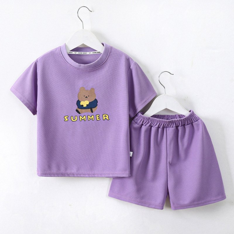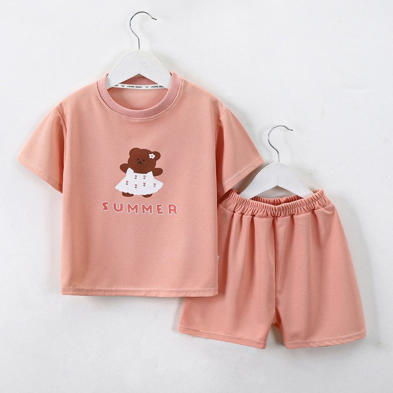 Kids Toddler Big Boys Girls Casual Cute Cartoon Bear Letters Print Short Sleeve Round Neck T-Shirt Shorts Set