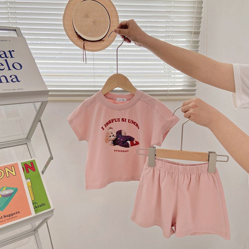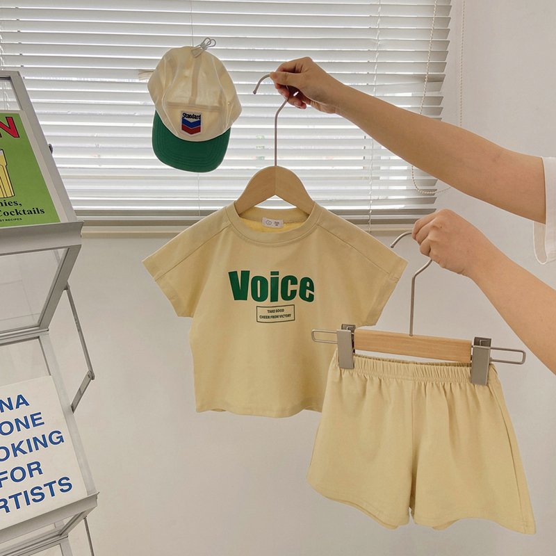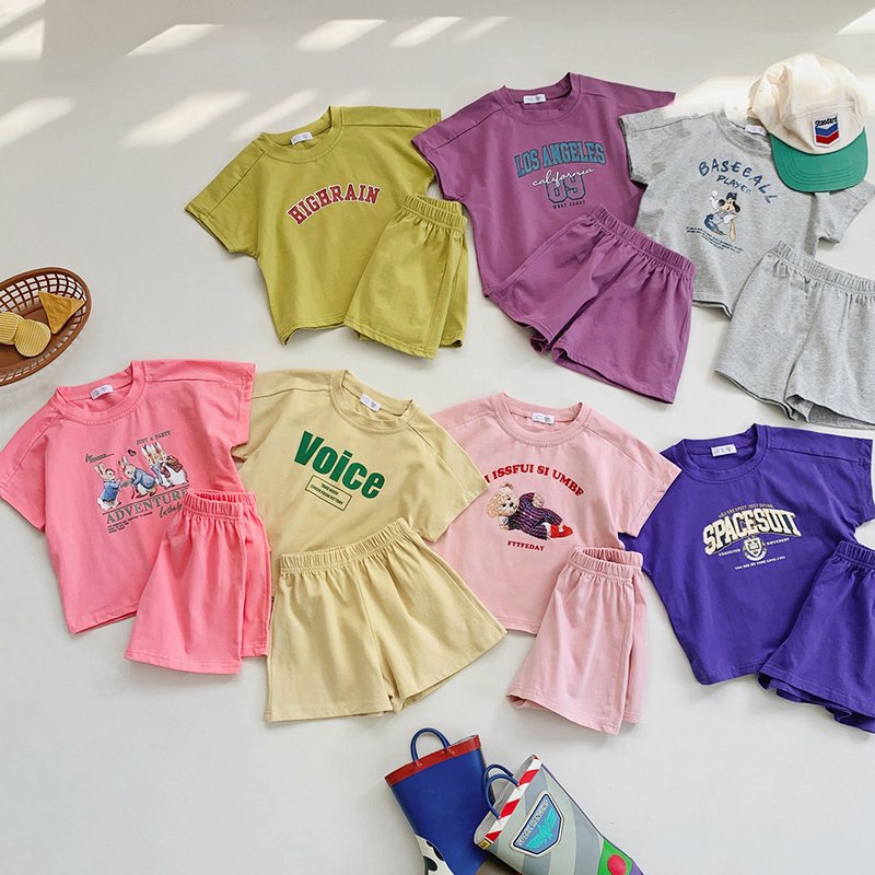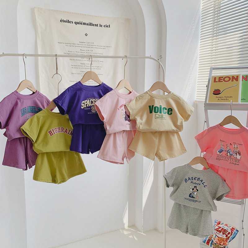 Kids Toddler Big Boys Girls Casual Cute Cartoon Letters Print Short-Sleeved T-Shirt Shorts Set