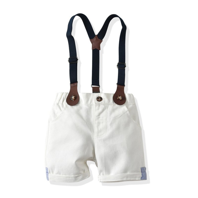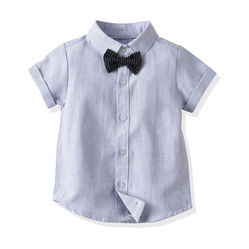 Kids Toddler Big Boys Party Clothing British Style Bow Stripe Short Sleeve Lapel Shirt Shorts Set