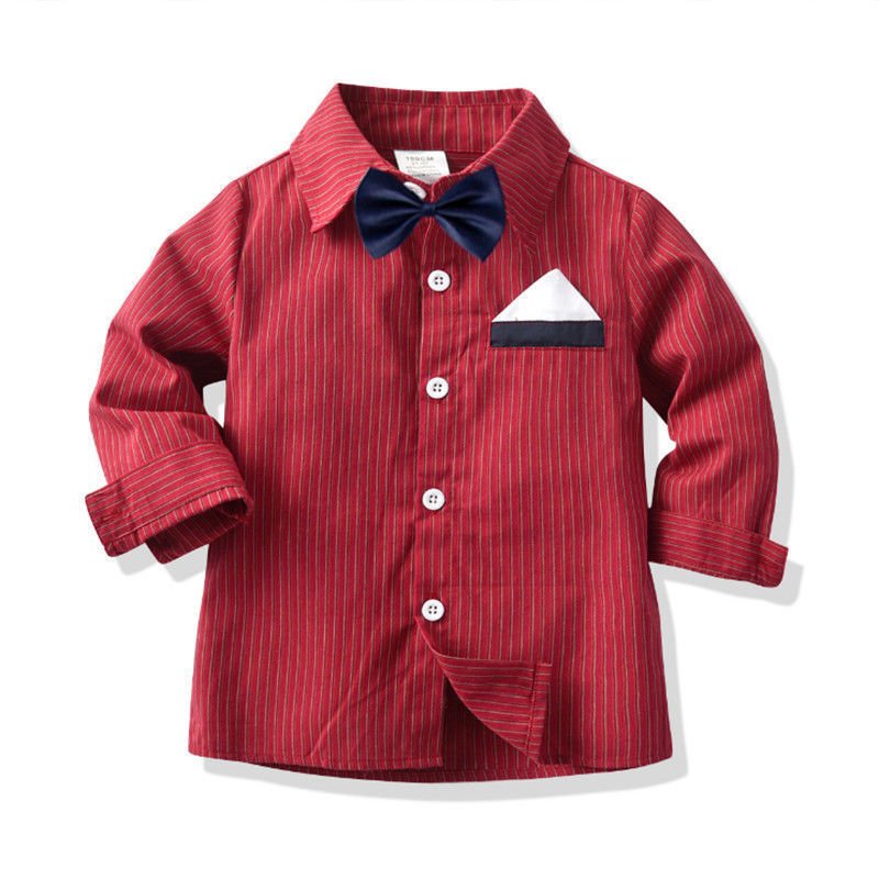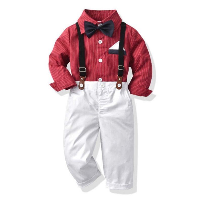 Kids Toddler Big Boys Party Clothing British Style Strip Long Sleeve Lapel Shirt Trousers Set