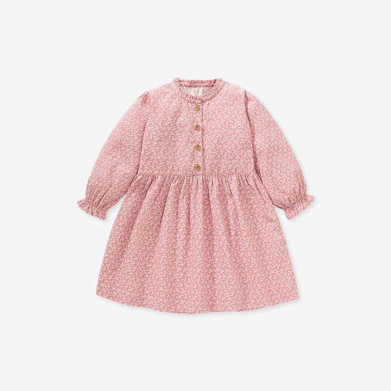 Kids Toddler Big Boys Spring Autumn Fashion Casual Cute Tiny Flower Round Neck Button Long Sleeve Dress