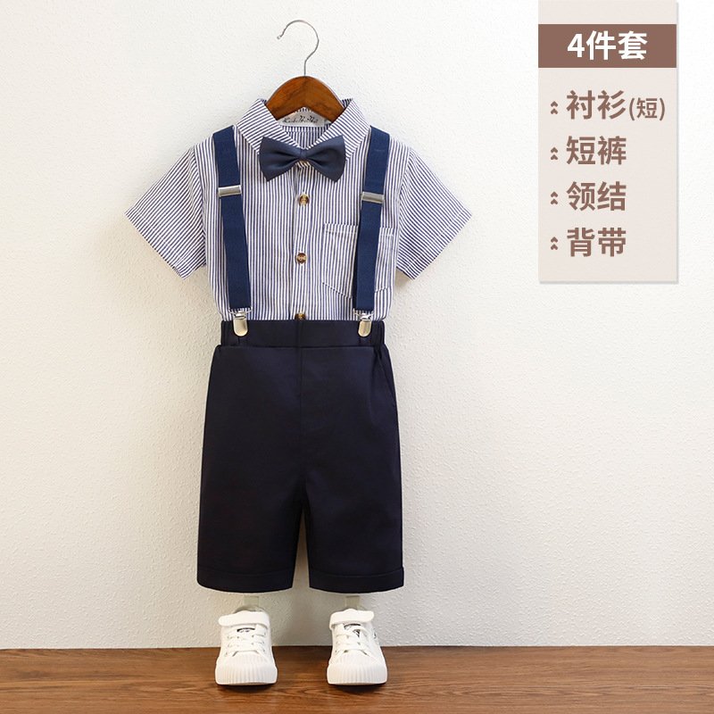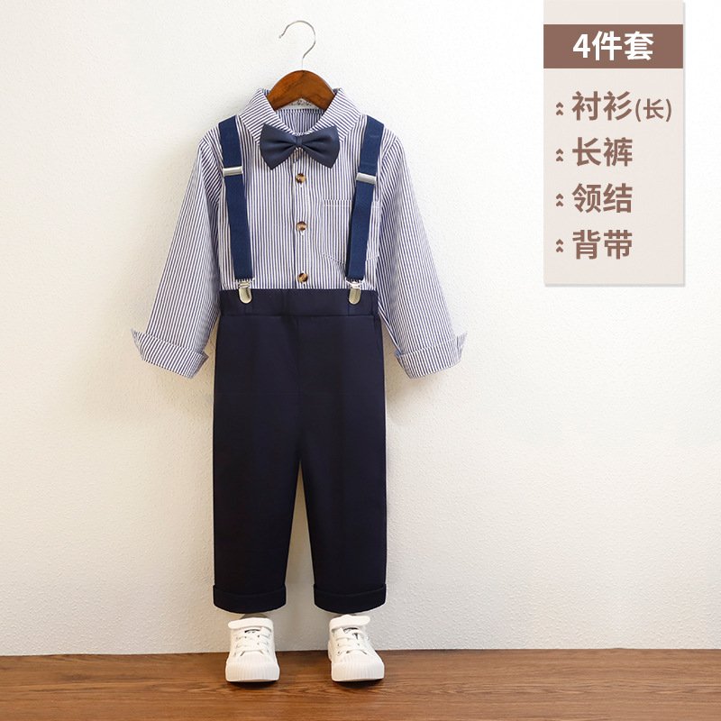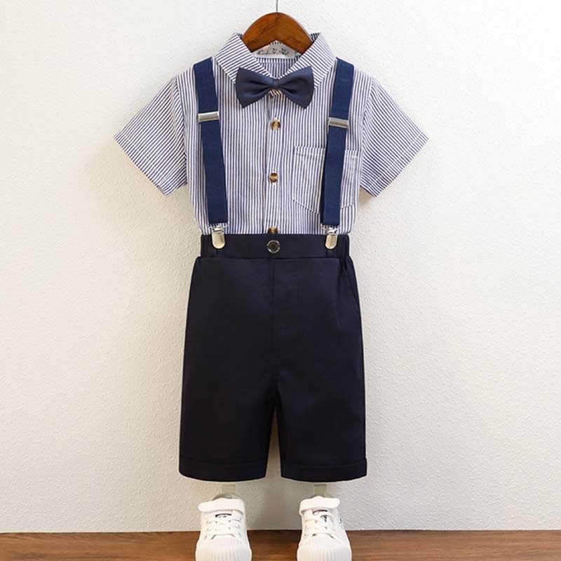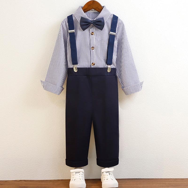 Kids Toddler Big Boys Spring Summer Autumn Fashion Casual British Style Bow Stripe Waistcoat Shirt Suspender Trousers Boys Party Clothing Set