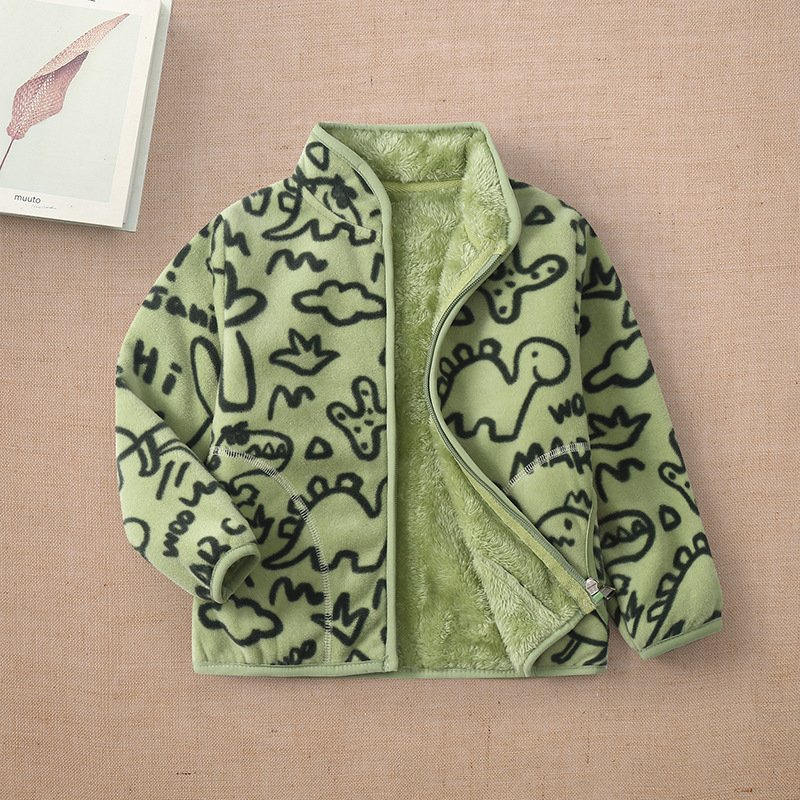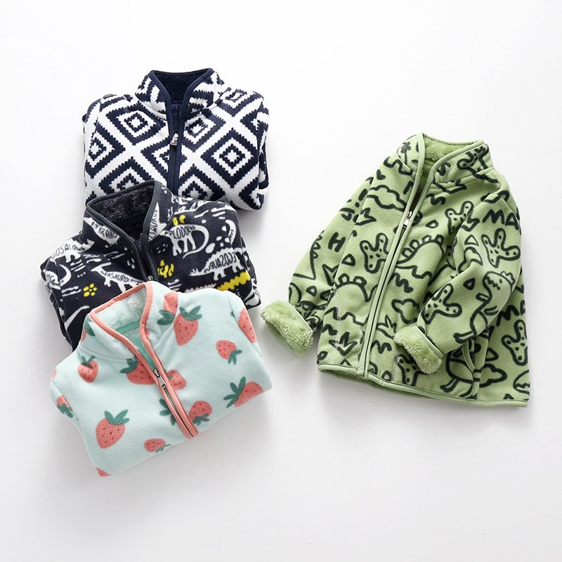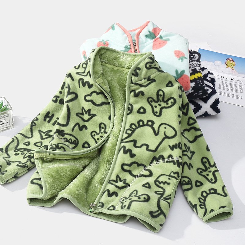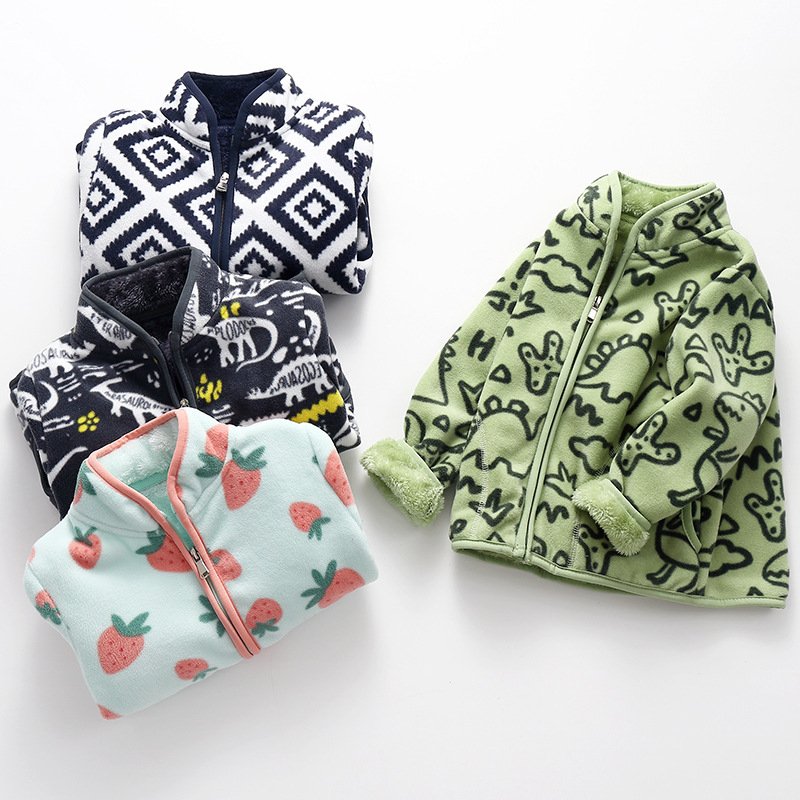 Kids Toddler Big Girls Boys Winter Cartoon Fleece-Lined Thickened Plush Velvet Coat