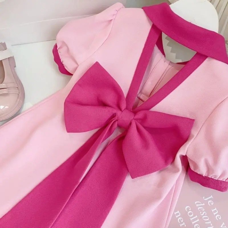 Kids Toddler Big Girls Casual Cute Cartoon Bunny Pattern Short Sleeve Lapel Dress