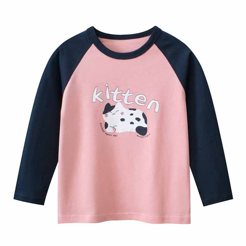 Kids Toddler Big Girls Casual Cute Cartoon Cat Alphabet Print Long Sleeve T-Shirt