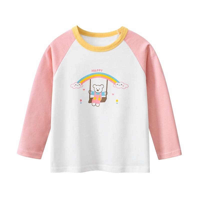 Kids Toddler Big Girls Casual Cute Cartoon Letters Print Long Sleeve Round Neck T-Shirt