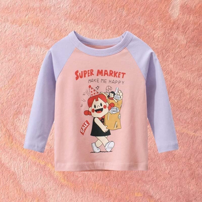 Kids Toddler Big Girls Casual Cute Cartoon Print Long Sleeve Round Neck T-Shirt