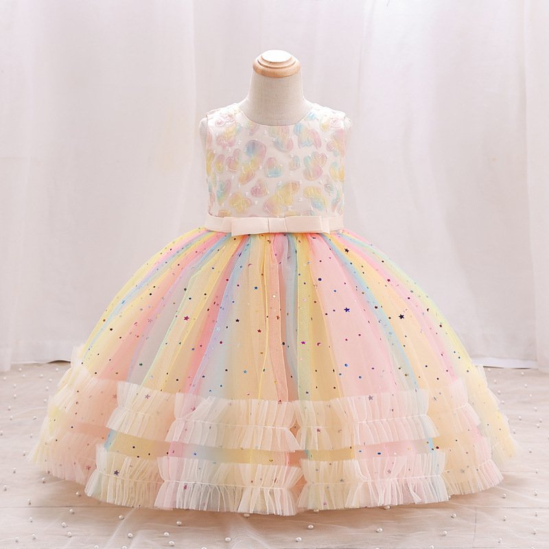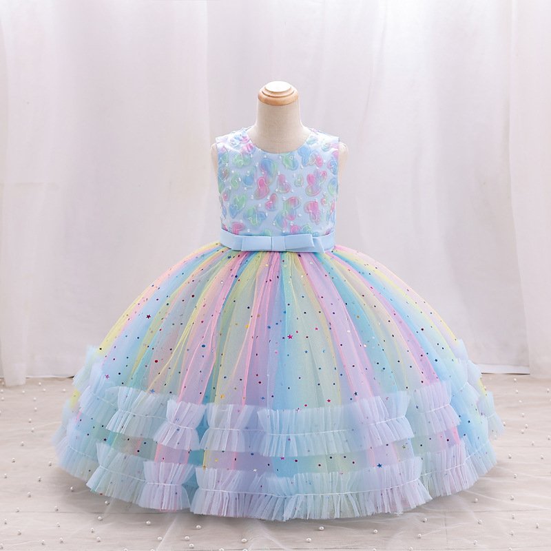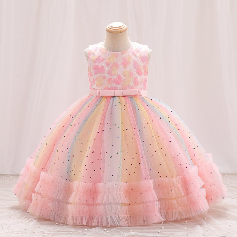 Kids Toddler Big Girls Casual Cute Party Heart Sequins Gradient Color Mesh Sleeveless Tutu Princess Dress