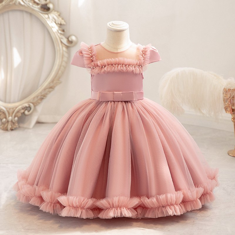 Kids Toddler Big Girls Casual Cute Party Mesh Raglan Sleeve Round Neck Tutu Princess Dress