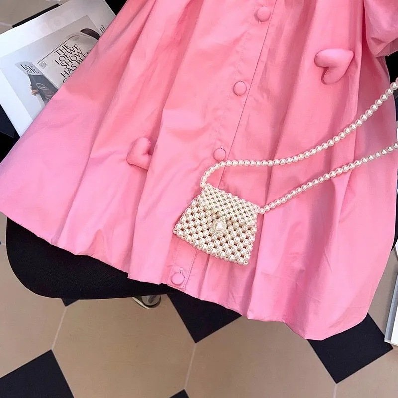 Kids Toddler Big Girls Casual Cute Solid Color Heart Short Sleeve Lapel Dress