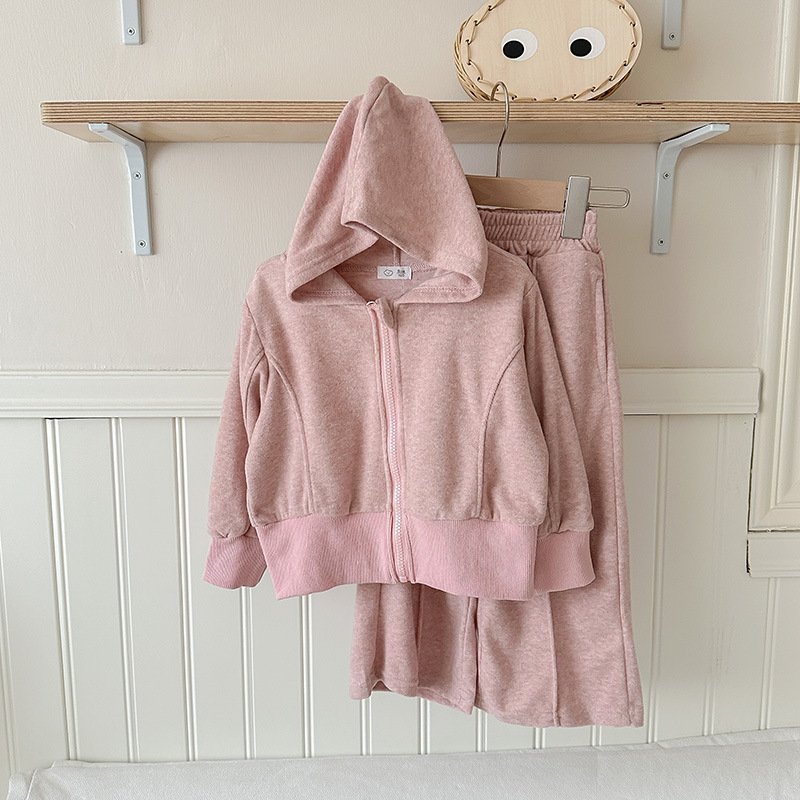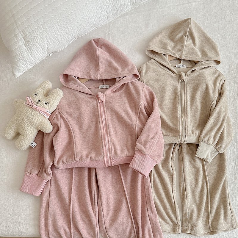 Kids Toddler Big Girls Casual Cute Solid Color Long Sleeve Hoodies Trousers Set