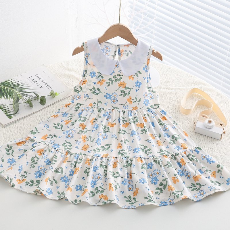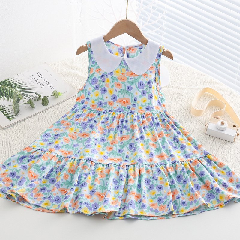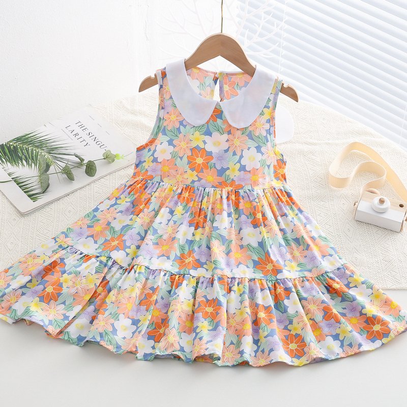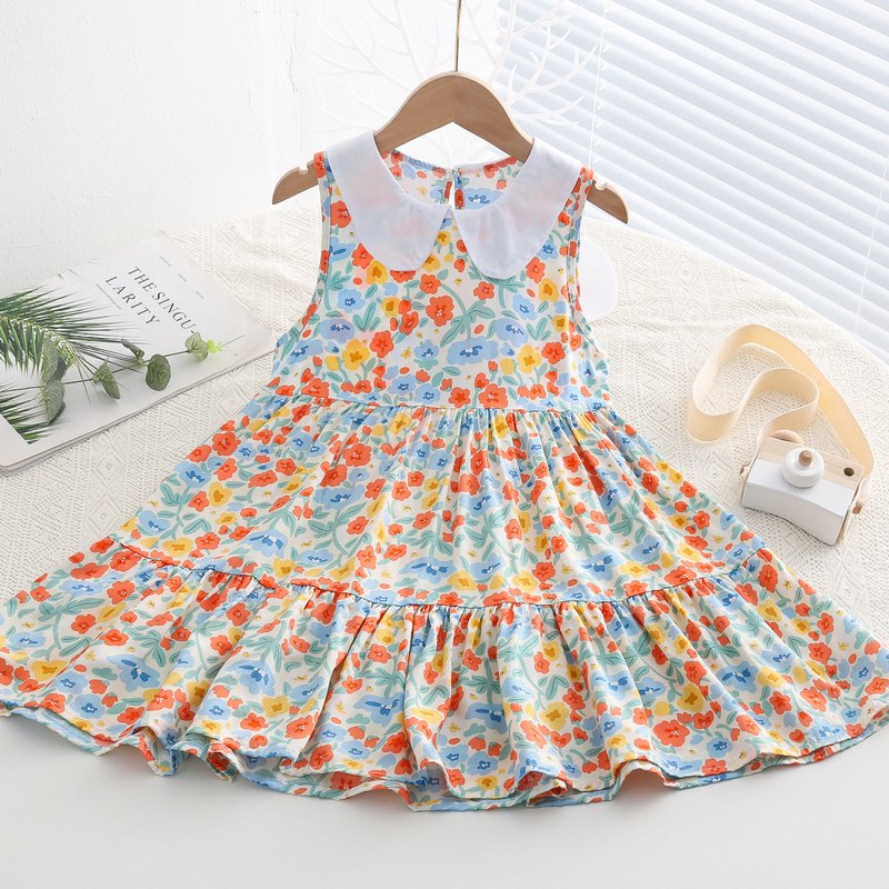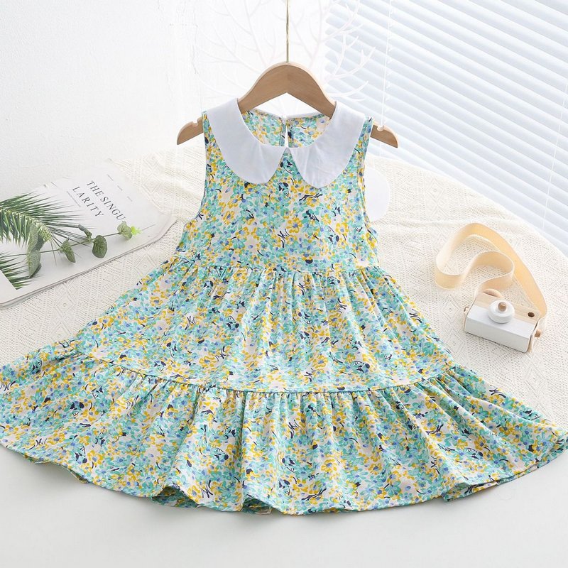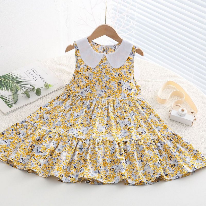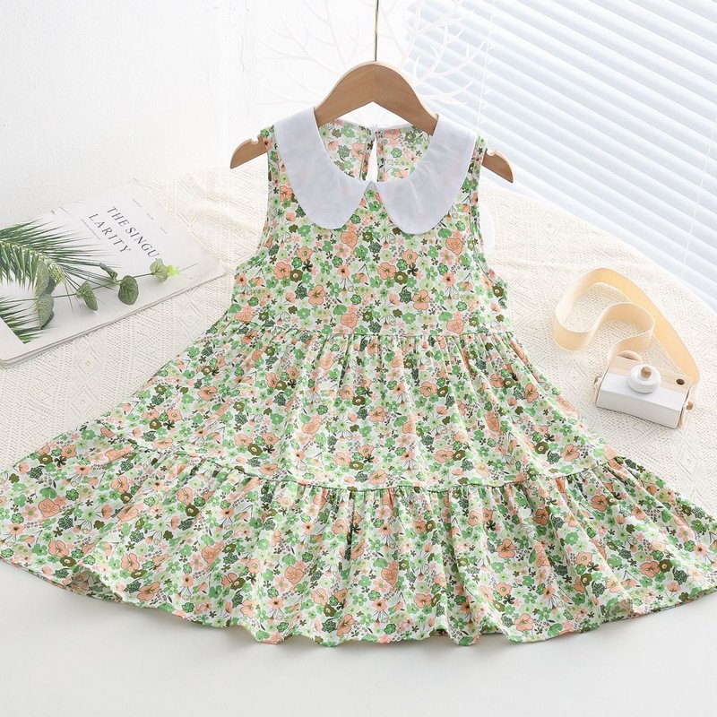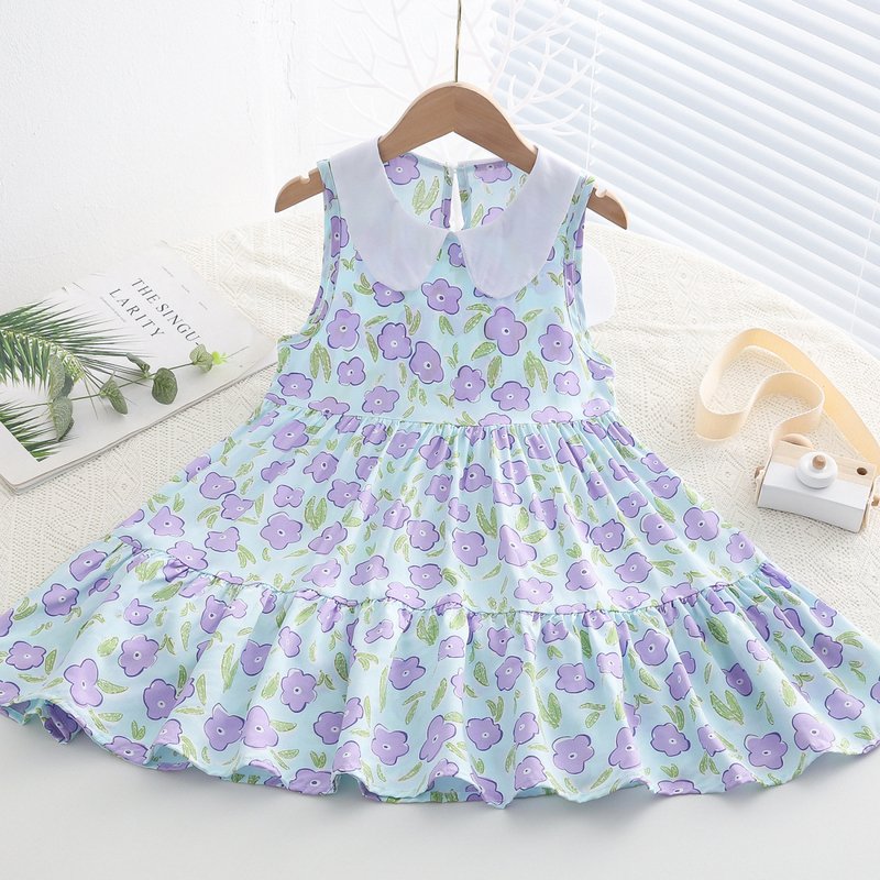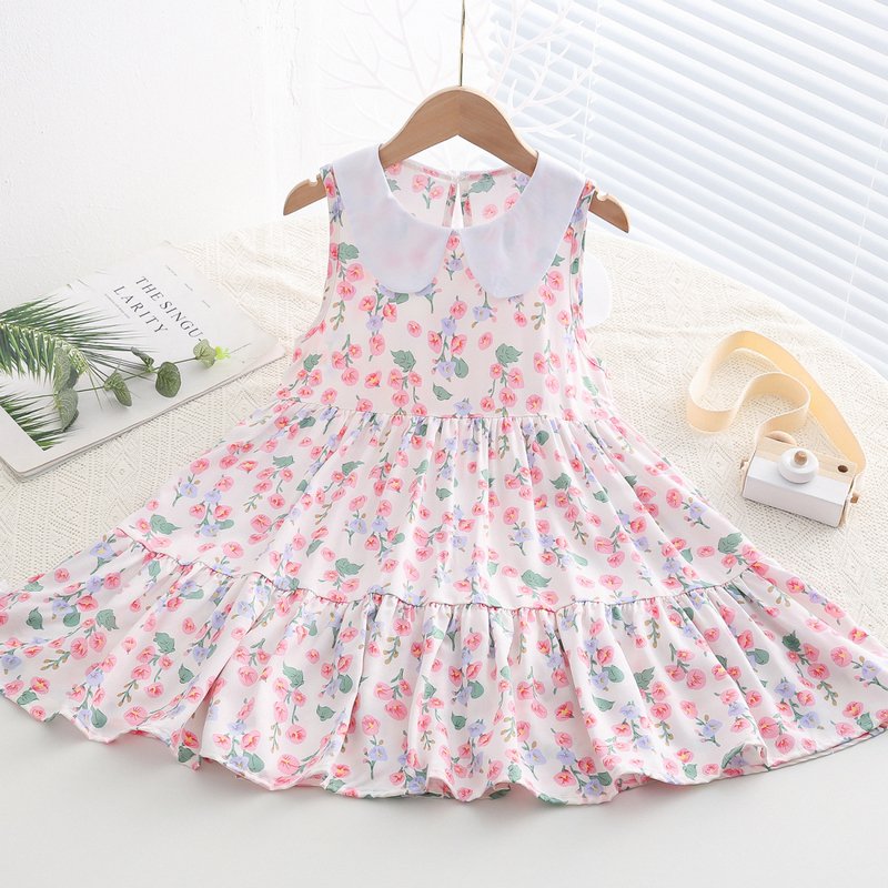 Kids Toddler Big Girls Casual Cute Sweet Tiny Flower Print Sleeveless Dress