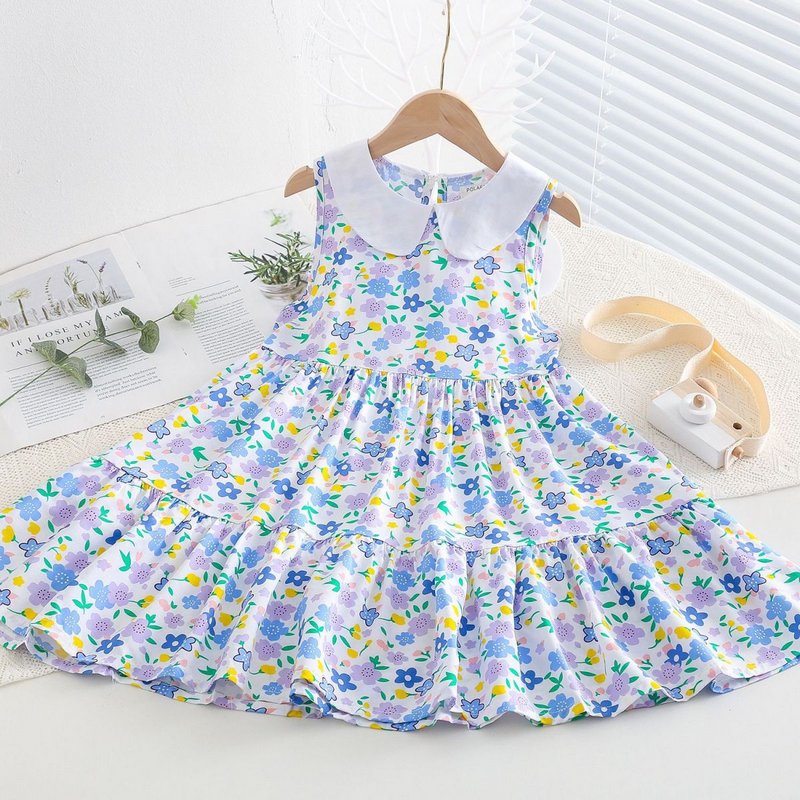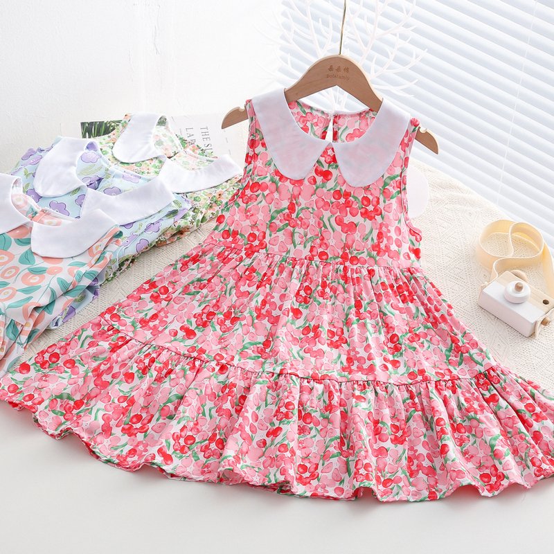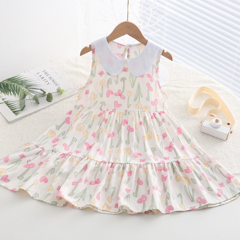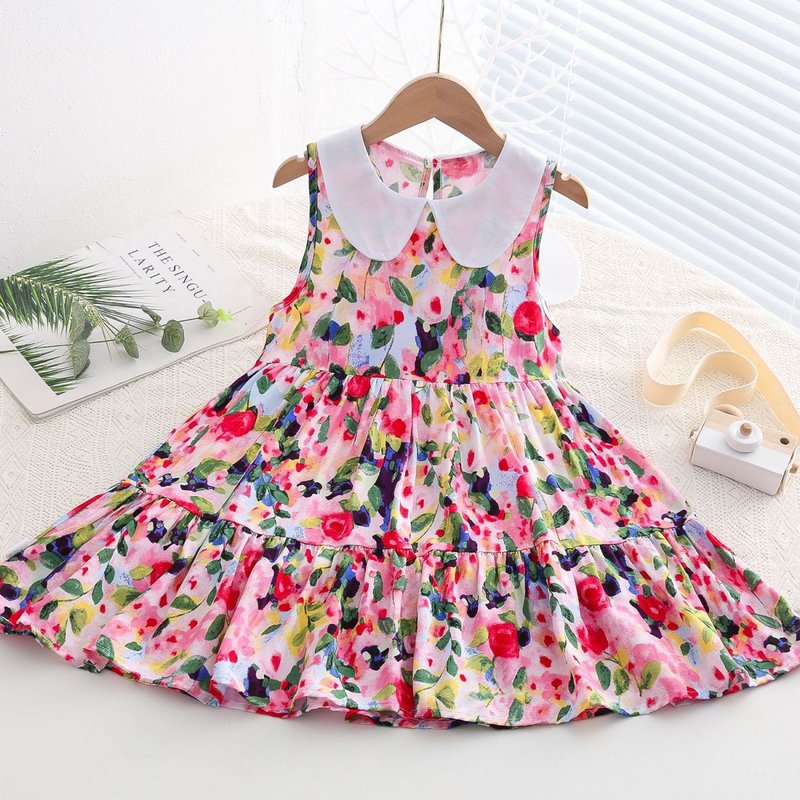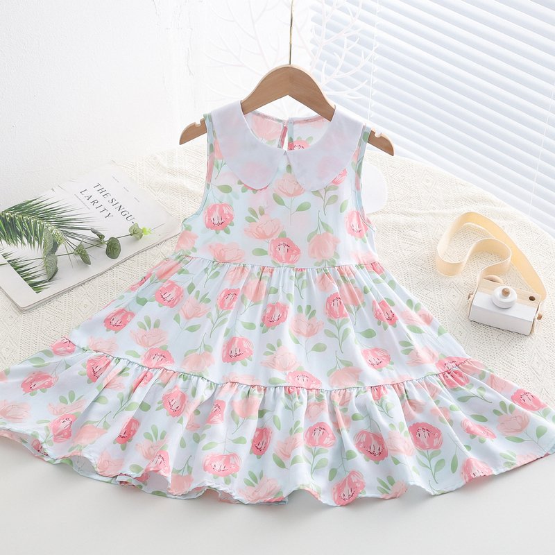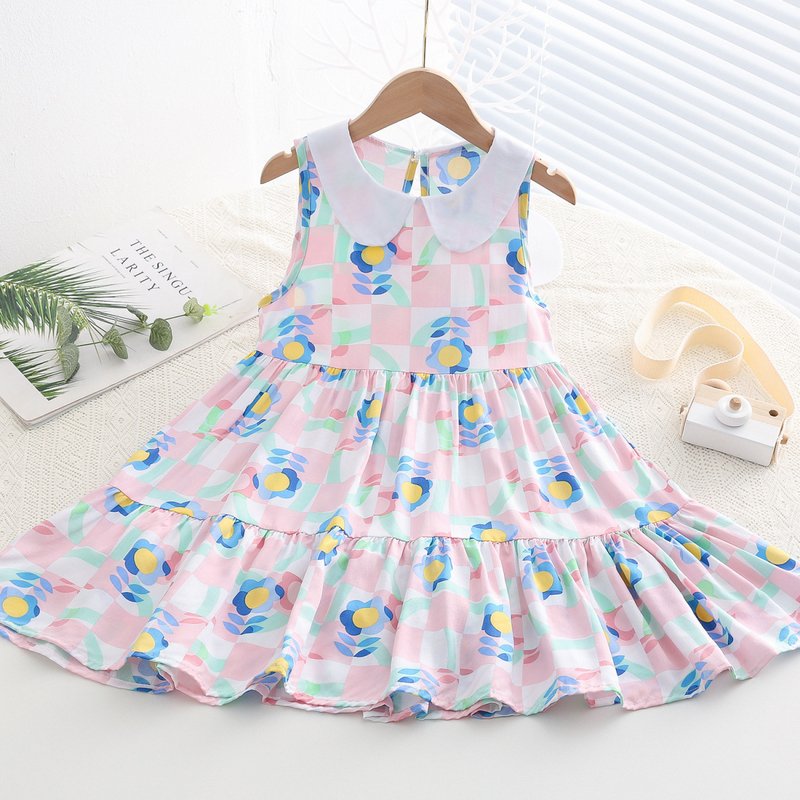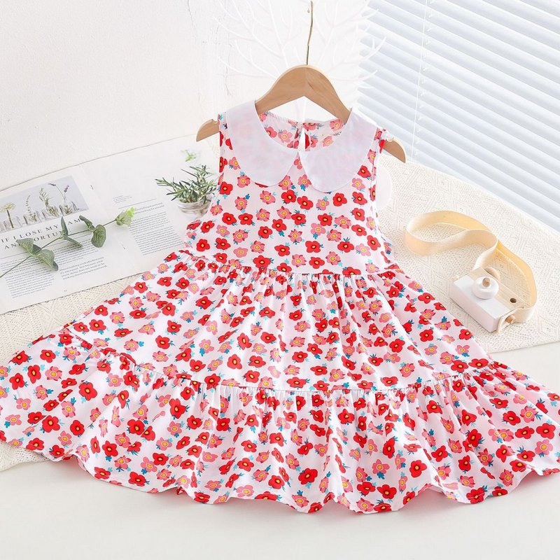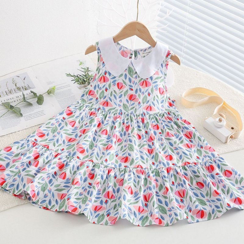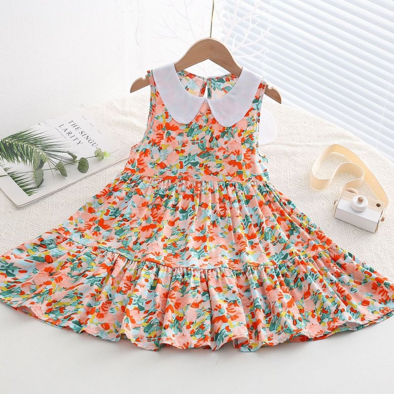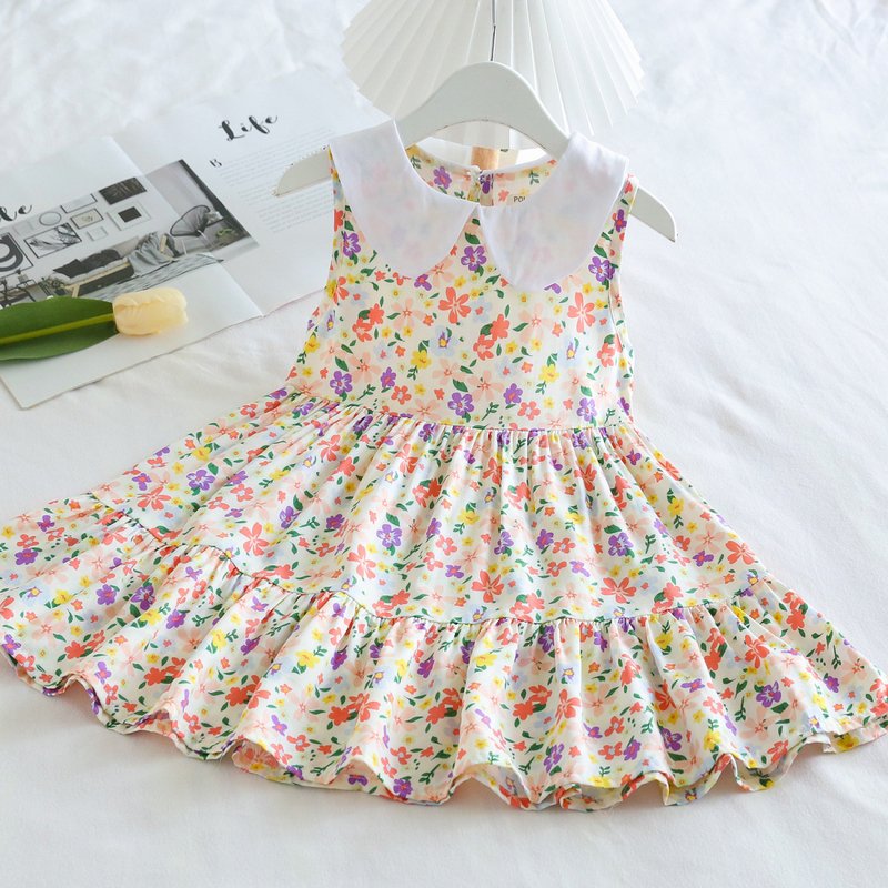 Kids Toddler Big Girls Casual Cute Sweet Tiny Flower Print Sleeveless Dress