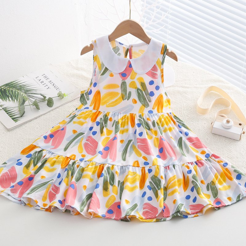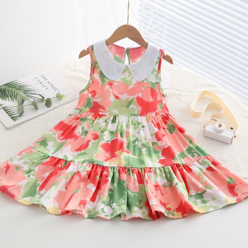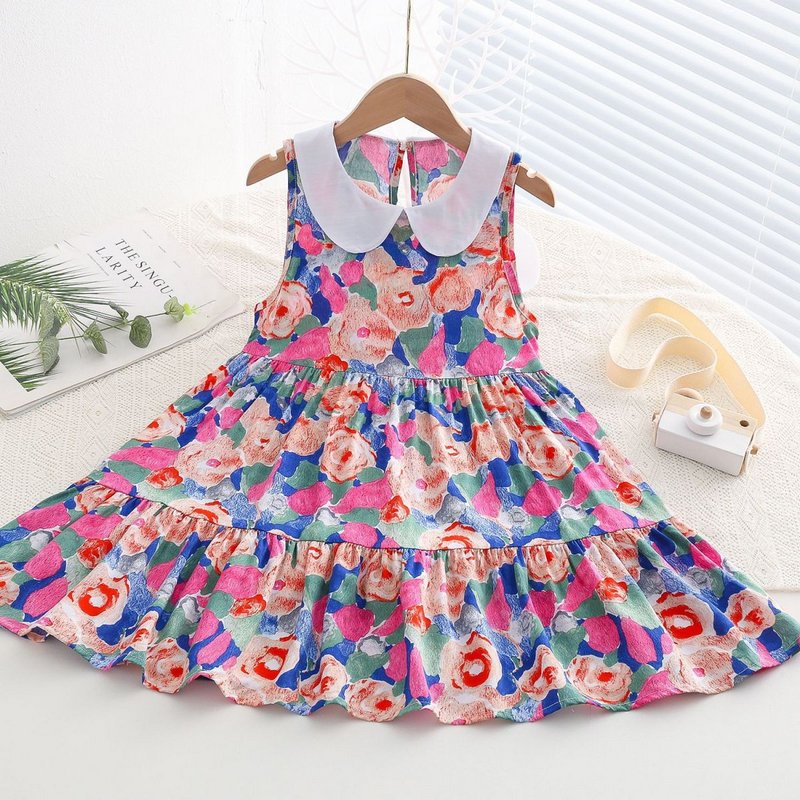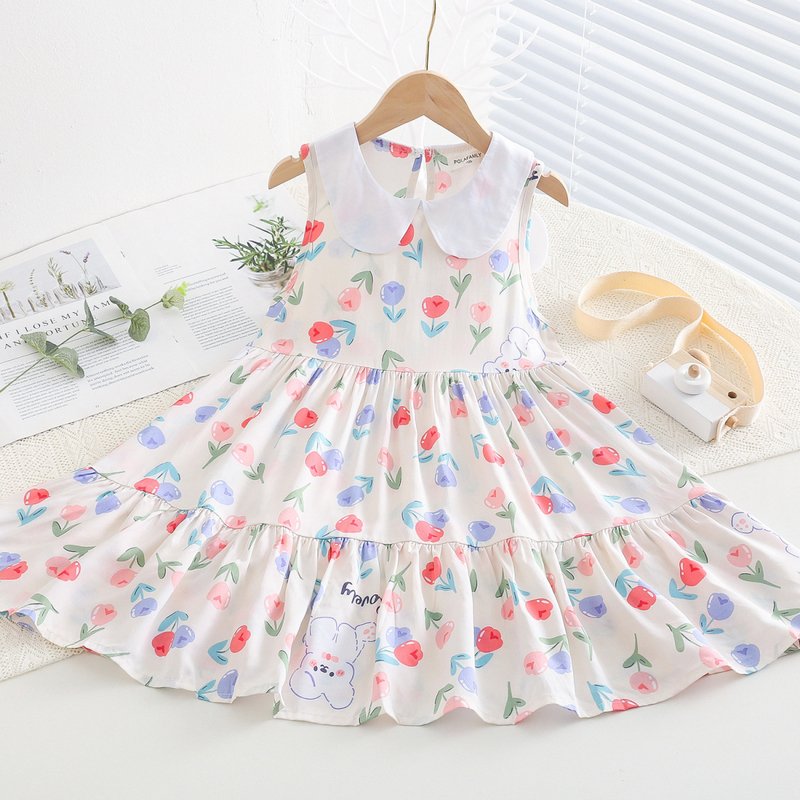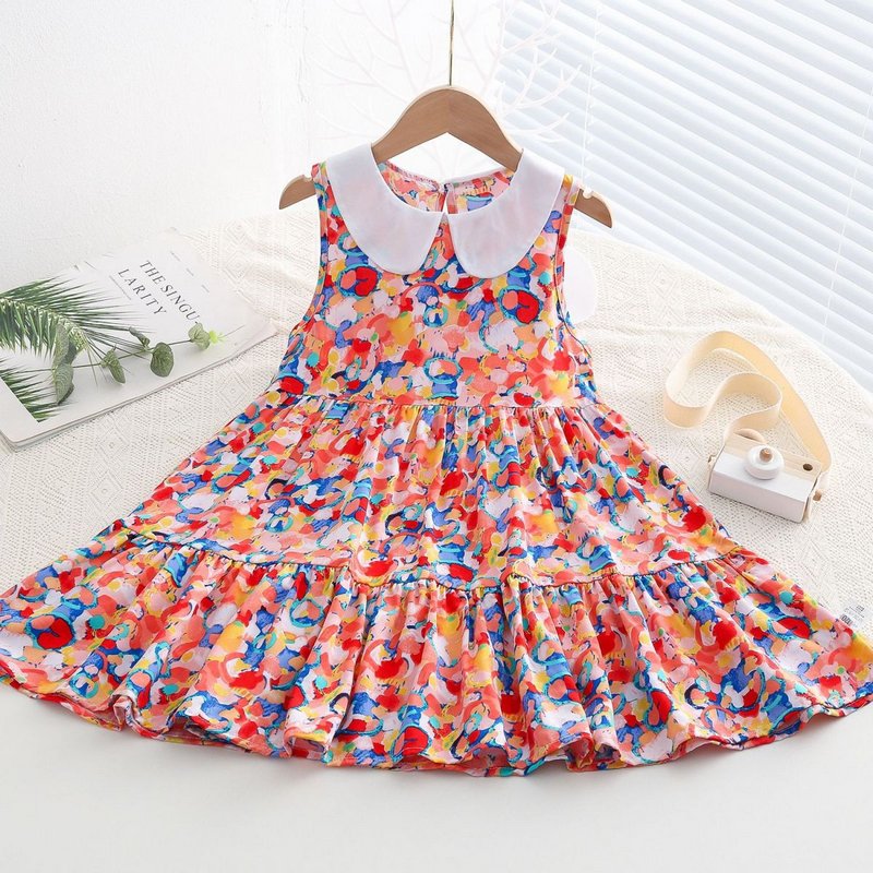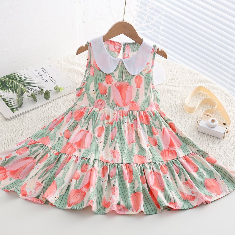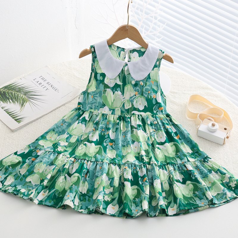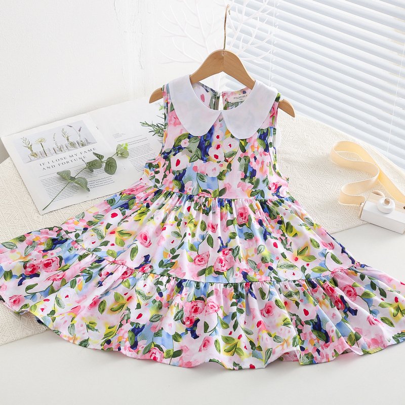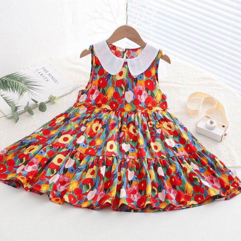 Kids Toddler Big Girls Casual Cute Sweet Tiny Flower Print Sleeveless Dress