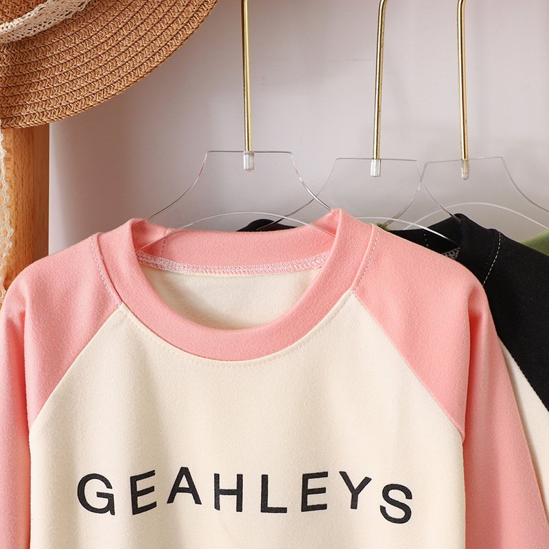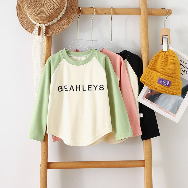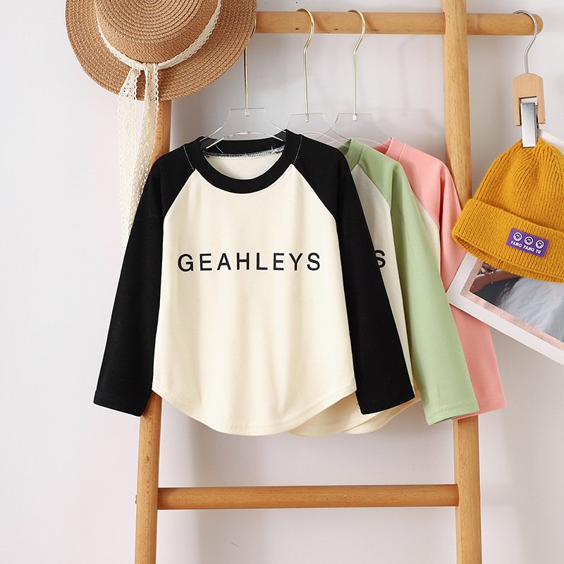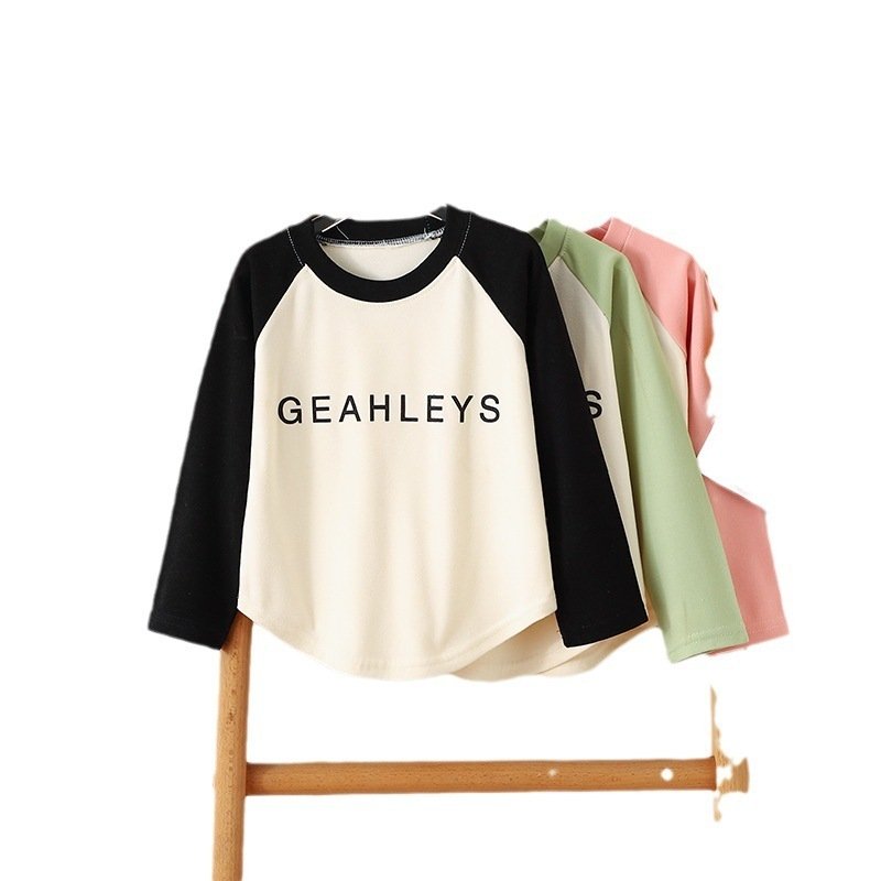 Kids Toddler Big Girls Fashion Casual Color Matching Letter Long Sleeve Round Neck T-Shirt