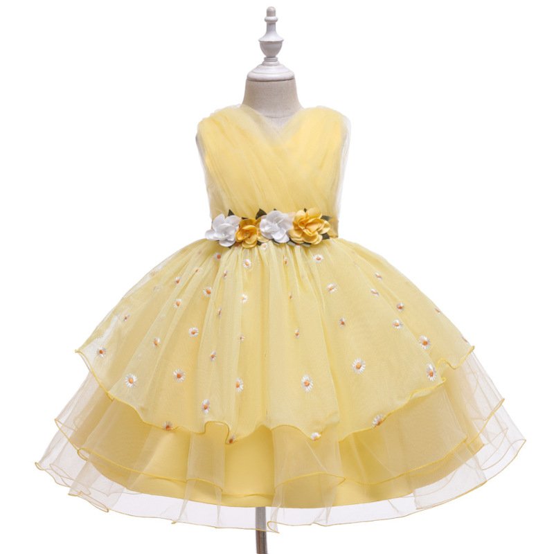 Kids Toddler Big Girls Fashion Party Cute Sweet Floral Solid Color Pleated Sleeveless Mesh Party Tutu Dress