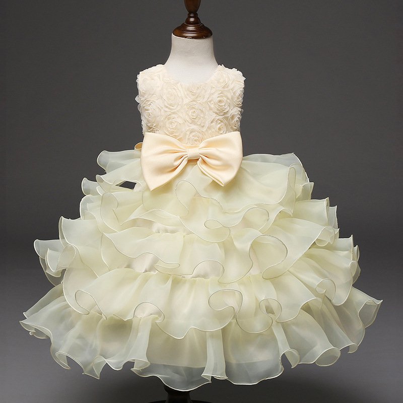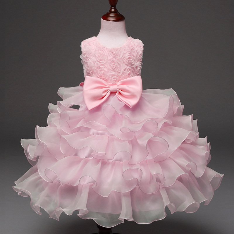 Kids Toddler Big Girls Fashion Party Cute Sweet Solid Color Bow Flounced Sleeveless Mesh Party Tutu Dress