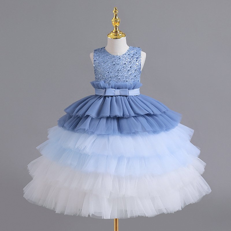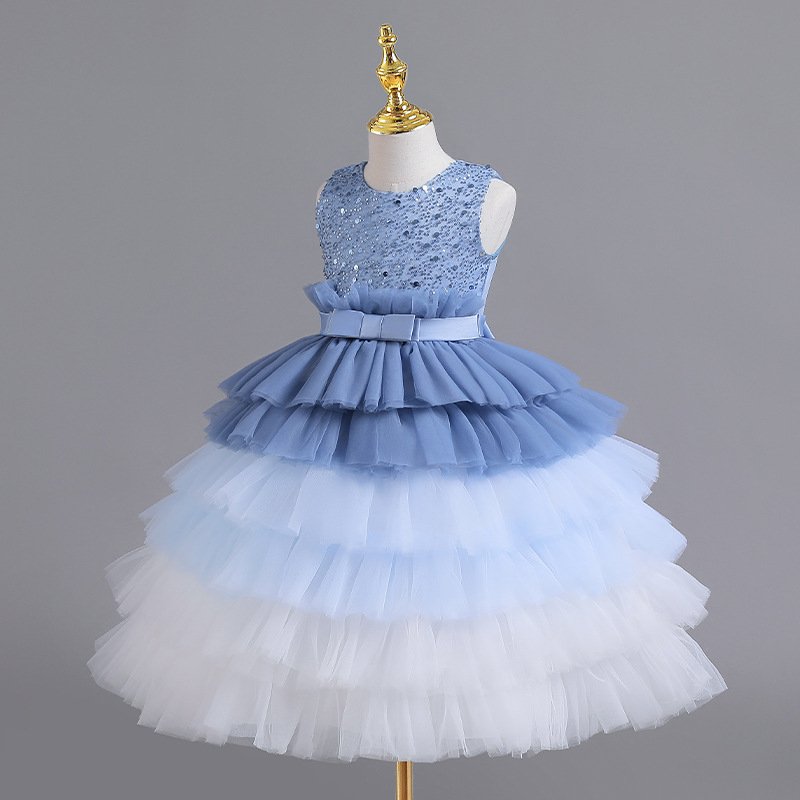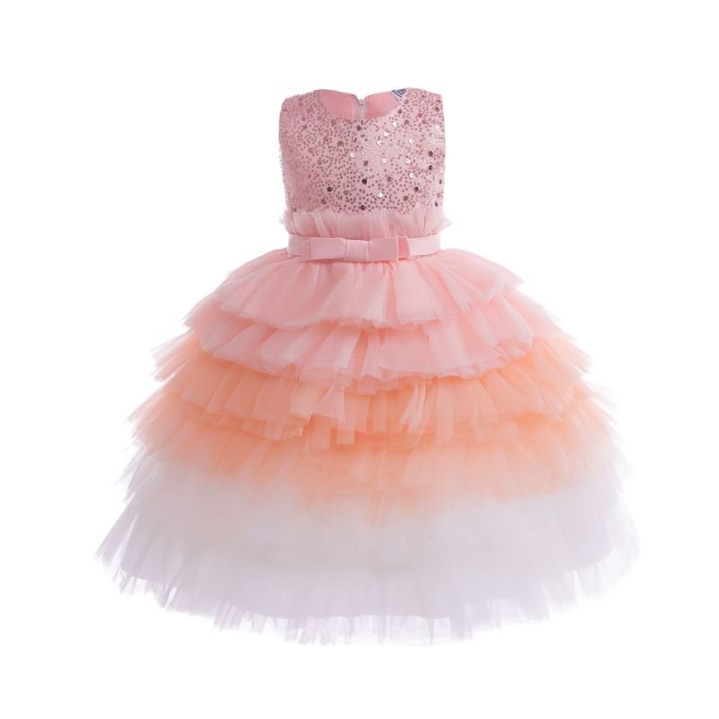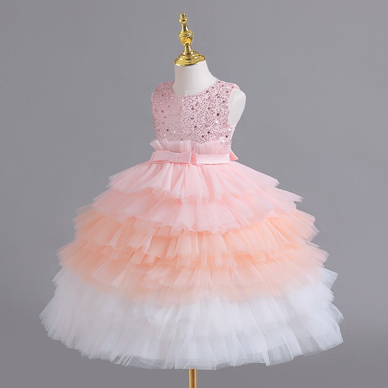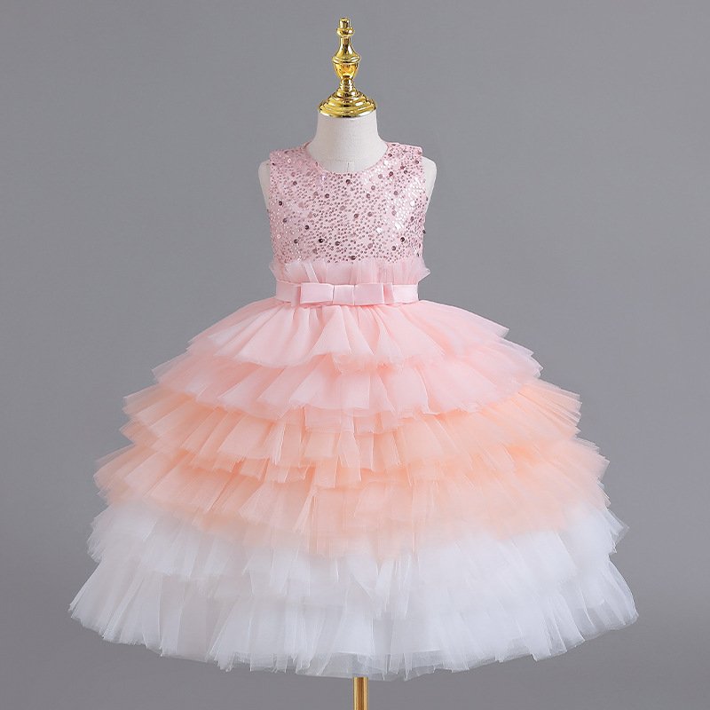 Kids Toddler Big Girls Sequins Gradient Color Mesh Sleeveless Party Tutu Princess Dress