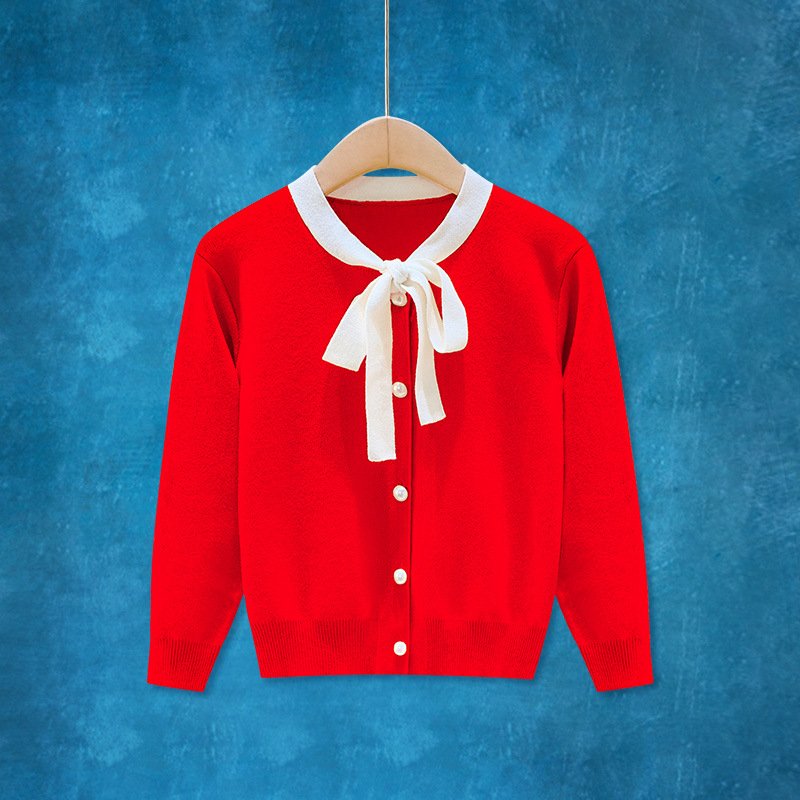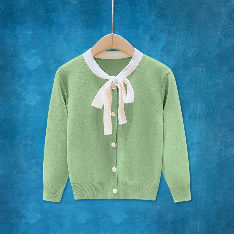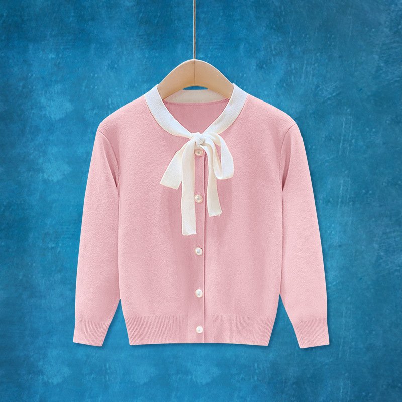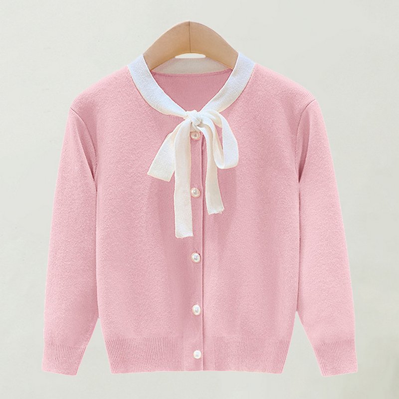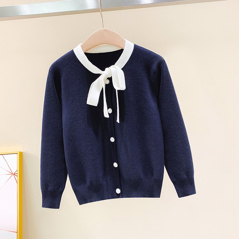 Kids Toddler Big Girls Spring Autumn Fashion Casual British Style Bow Long Sleeve Cardigan Knitted