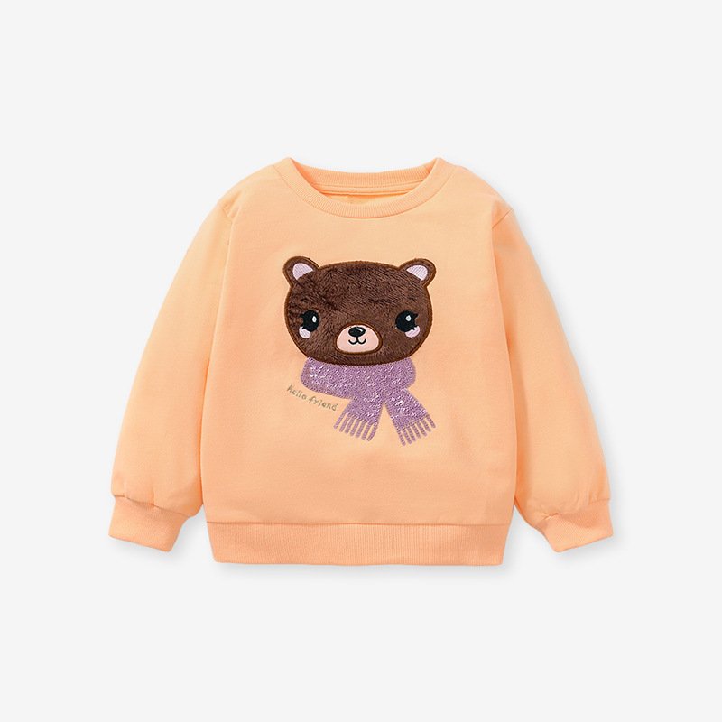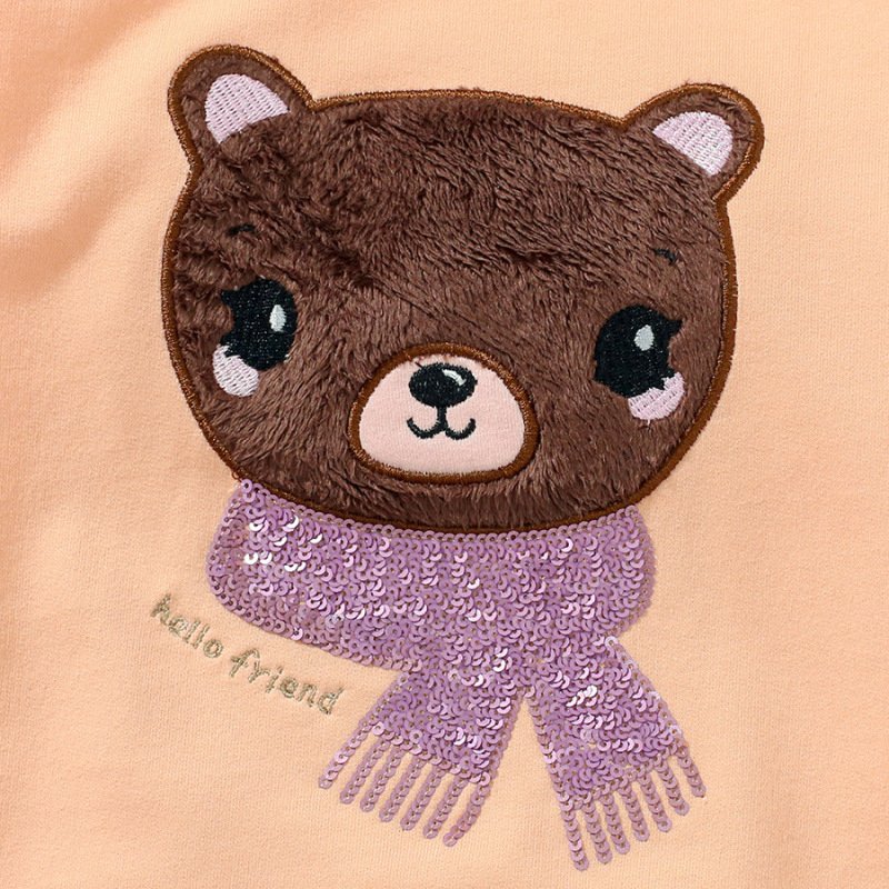 Kids Toddler Big Girls Spring Autumn Fashion Casual Cute Cartoon Bear Embroidery Sequins Round Neck Sweatshirts