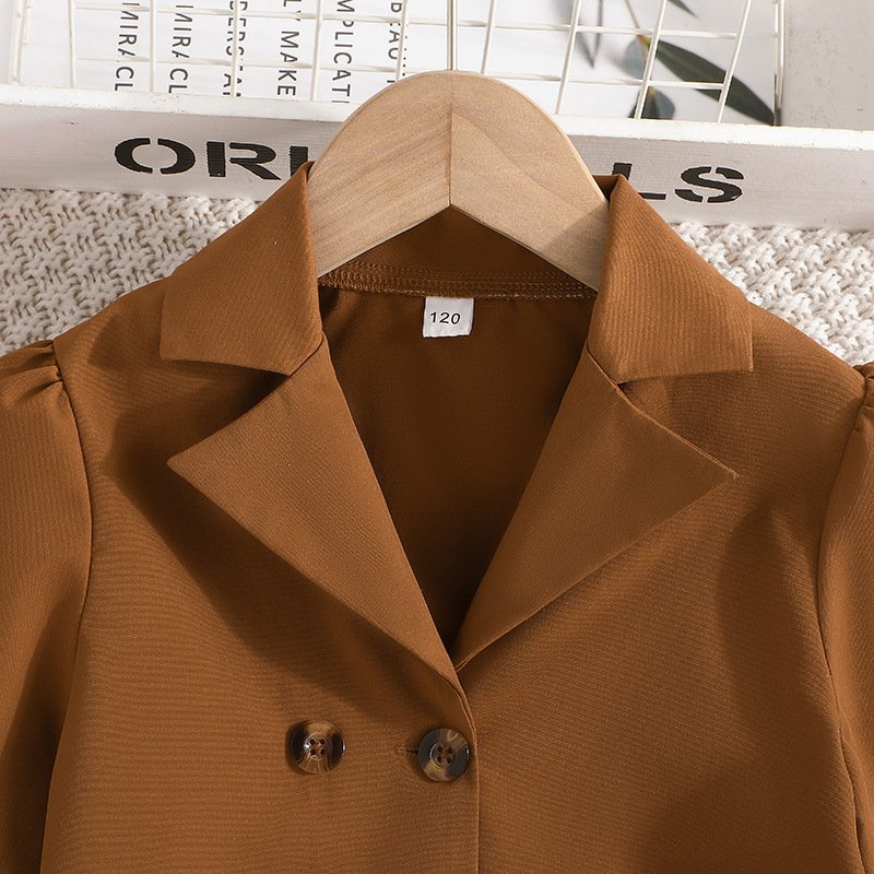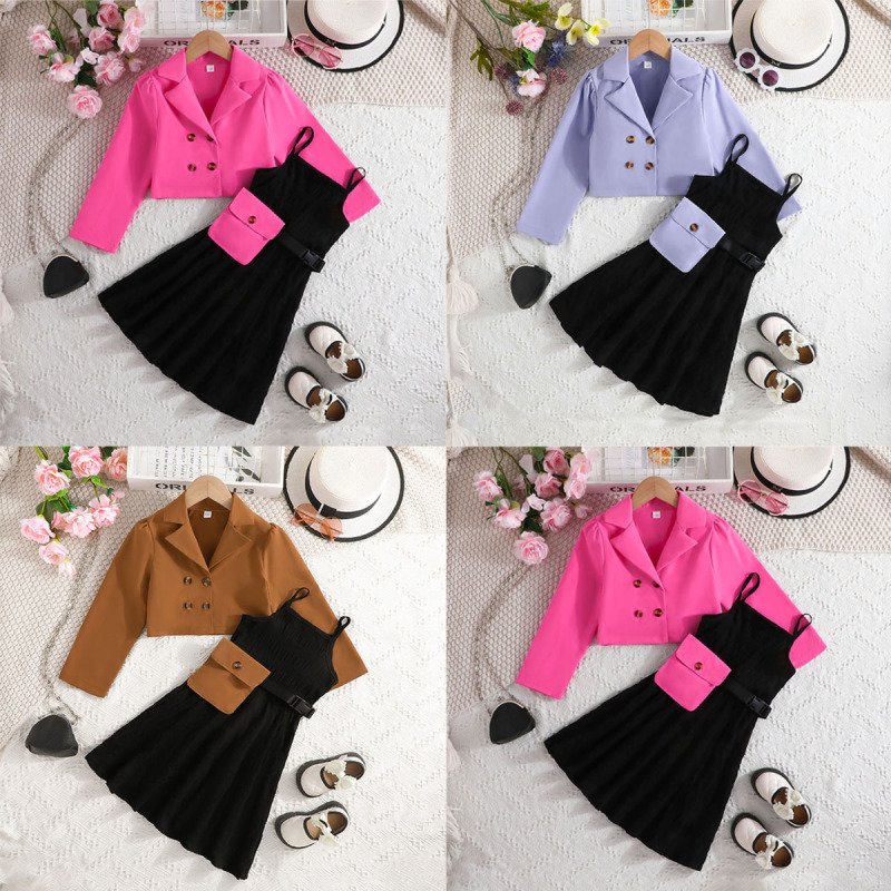 Kids Toddler Big Girls Spring Autumn Fashion Casual Long Sleeve Lapel Coat Cami Dress Set