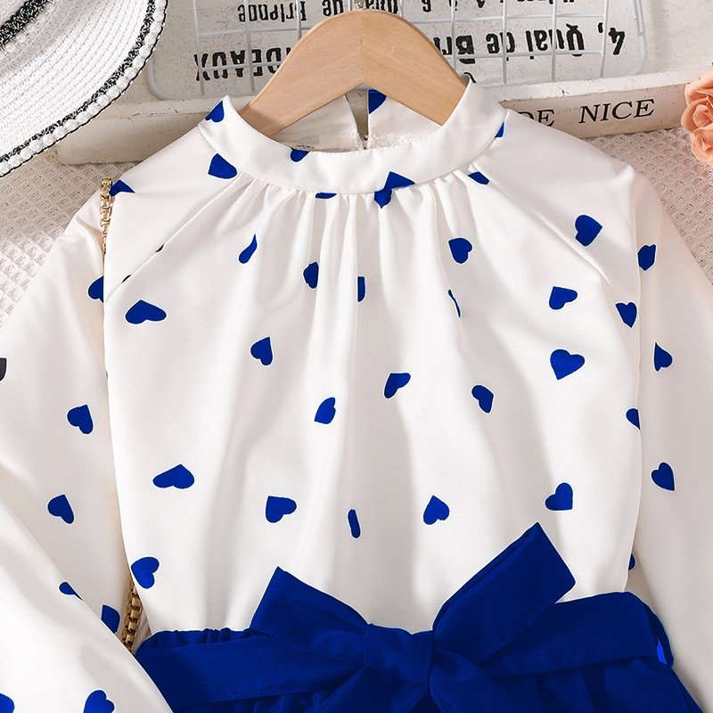 Kids Toddler Big Girls Spring Fashion Casual Heart Print Long Sleeve Blouses Solid Color Trousers Set