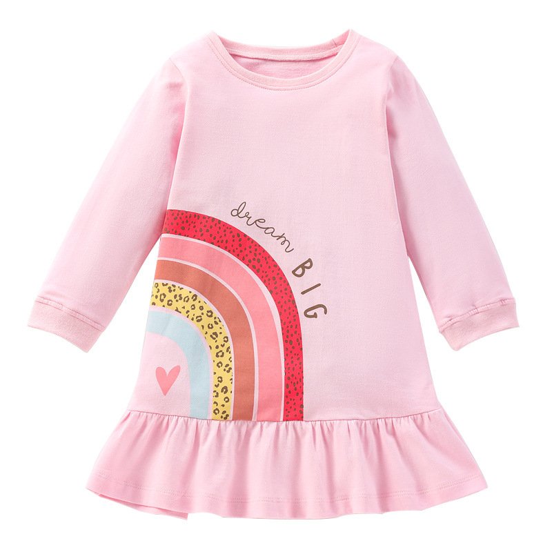 Kids Toddler Big Girls Summer Fashion Casual Sweet Cotton Solid Color Rainbow Letter Pattern Round Neck Long Sleeve Dress Trousers Set