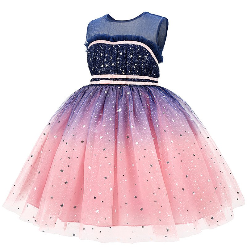 Kids Toddler Big Girls Summer Fashion Party Cute Sweet Gradient Sequins Bow Pleated Sleeveless Mesh Party Tutu Dress