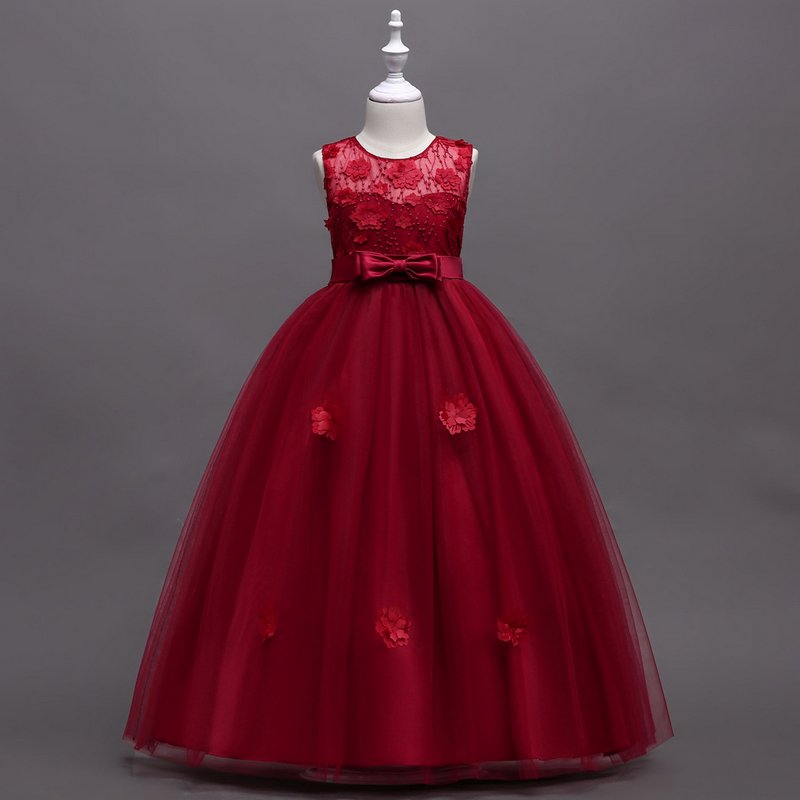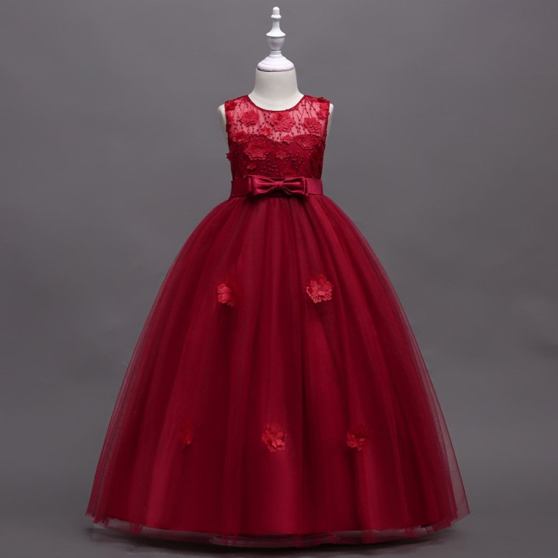 Kids Toddler Big Girls Summer Fashion Party Cute Sweet Solid Color Hollow Out Lace Bow Pleated Sleeveless Mesh Party Tutu Dress