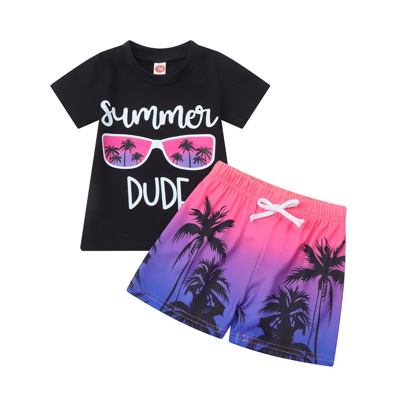Kids Toddler Boy Fashion Multicolor Glasses Clothes Coconut Leaf Set
