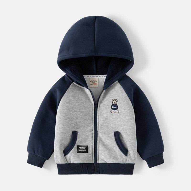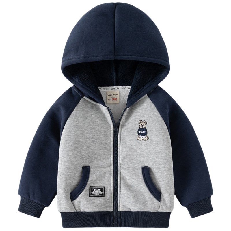 Kids Toddler Boys Autumn Winter Casual Cute Cartoon Fleece Long Sleeve Zipper Hooded Coat