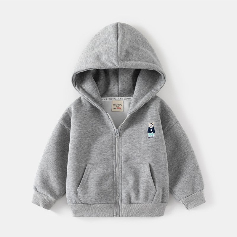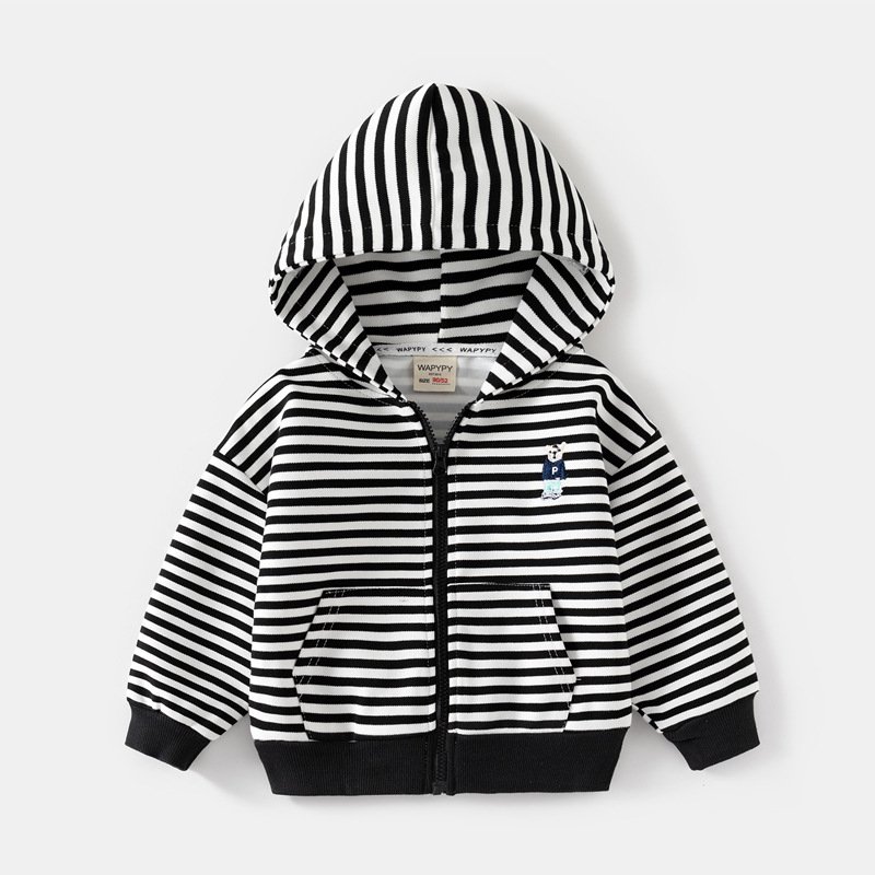 Kids Toddler Boys Autumn Winter Casual Cute Cartoon Stripe Fleece Long Sleeve Zipper Hooded Coat
