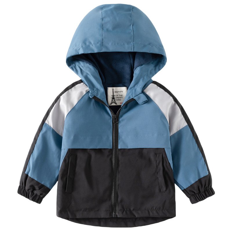 Kids Toddler Boys Autumn Winter Fashion Casual Color Matching Fleeces Long Sleeve Hooded Jacket