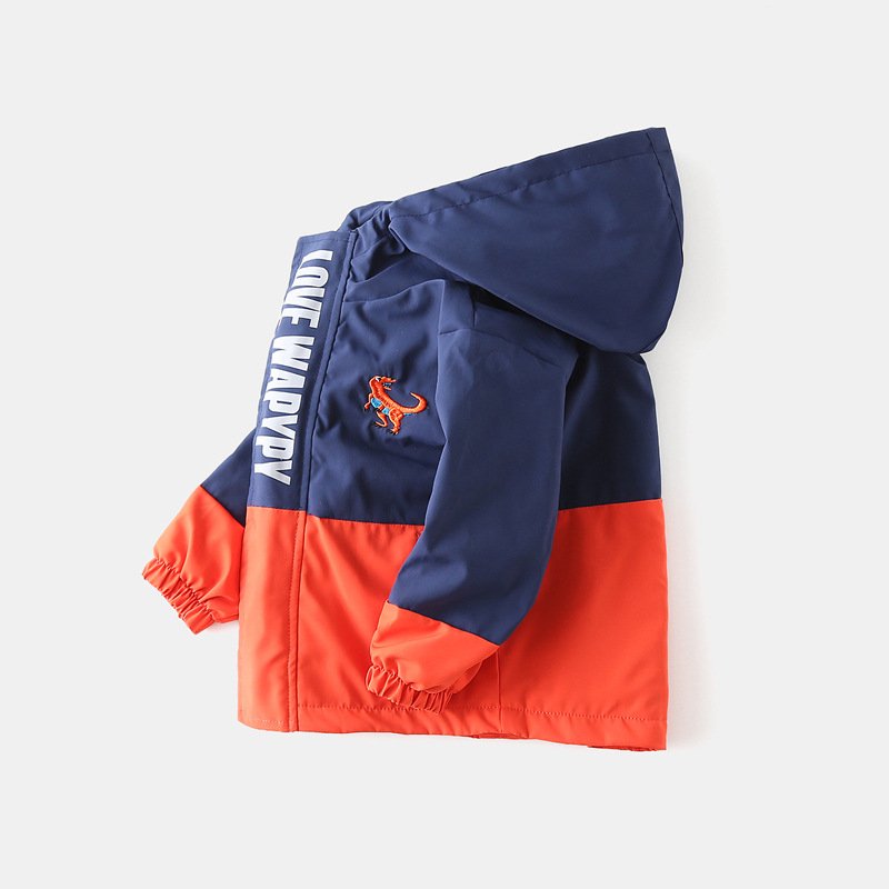 Kids Toddler Boys Autumn Winter Fashion Casual Color Matching Fleeces Long Sleeve Hooded Jacket