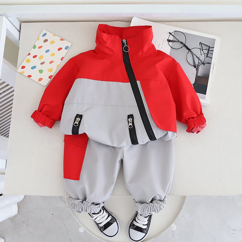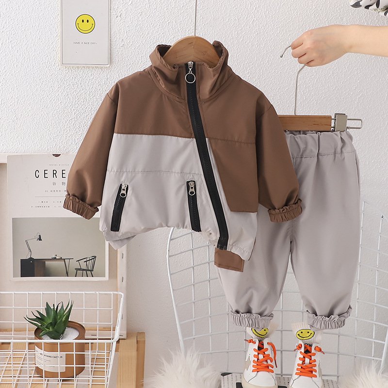 Kids Toddler Boys Casual Athleisure Color Block Long Sleeve Jacket Trousers Set