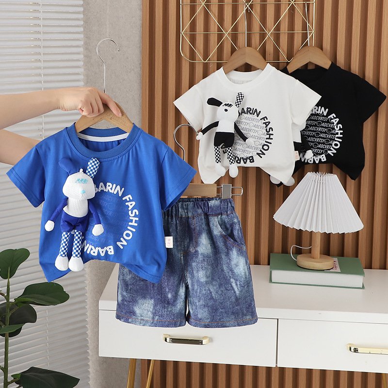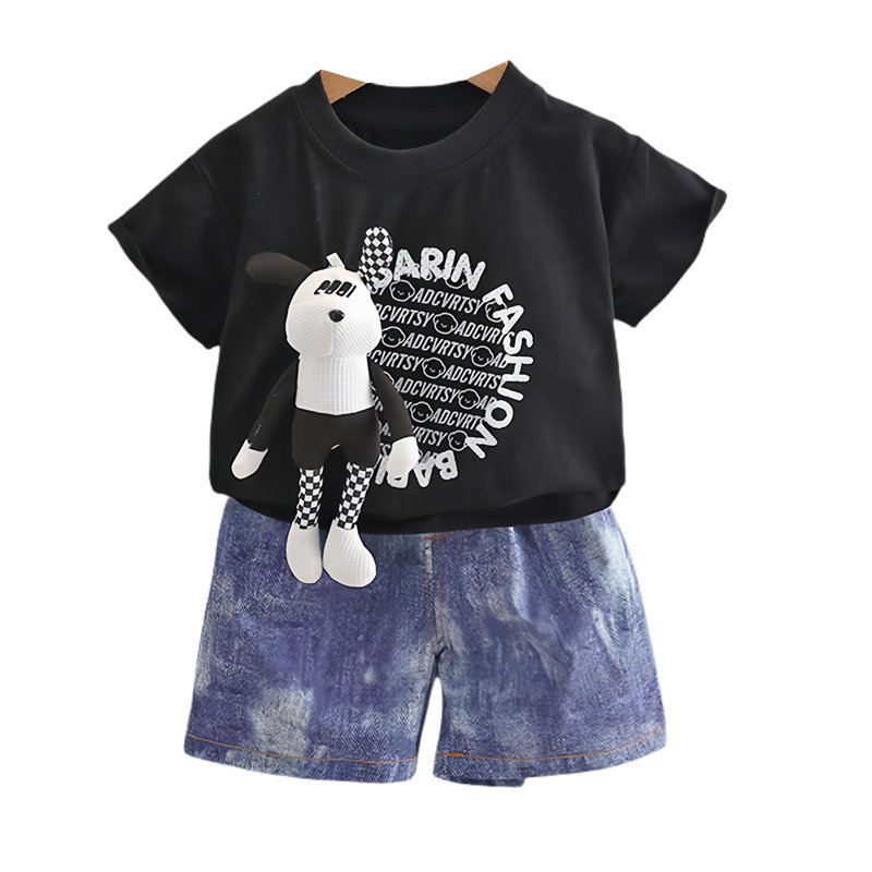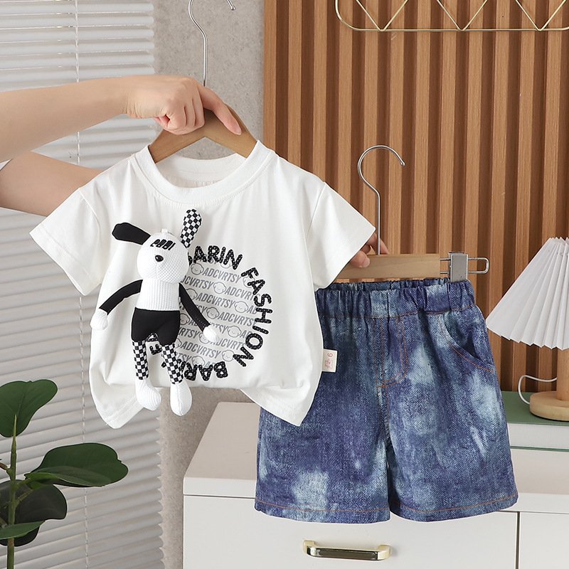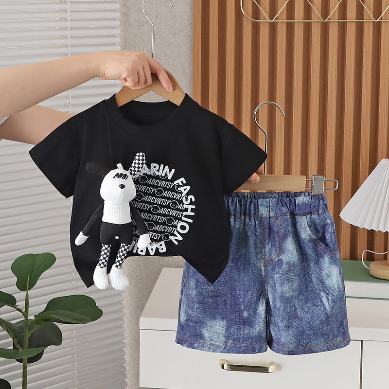 Kids Toddler Boys Casual Cartoon Alphabet Print Short Sleeve T-Shirt Shorts Sets