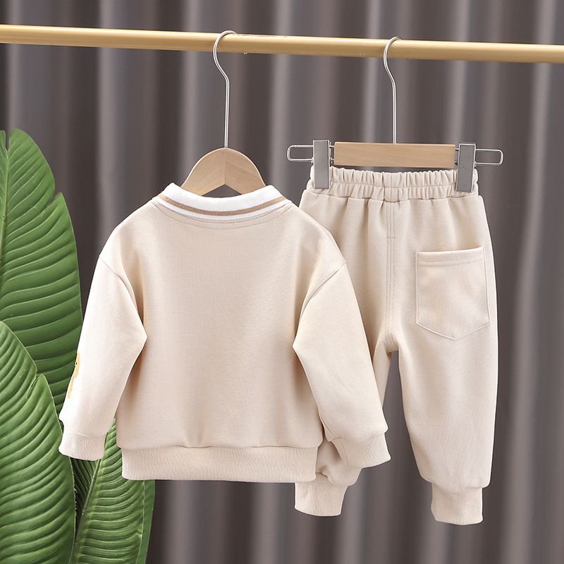 Kids Toddler Boys Casual Cartoon Bear Alphabet Embroidery Long Sleeve Lapel Sweatshirts Pants Sets