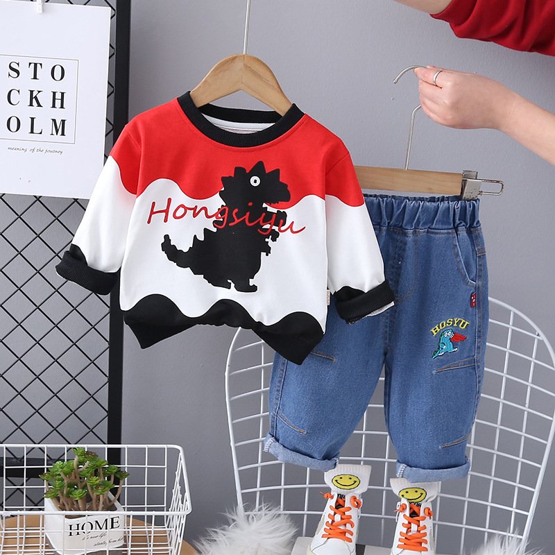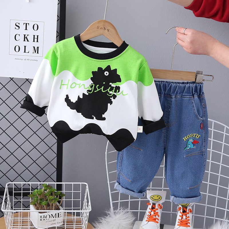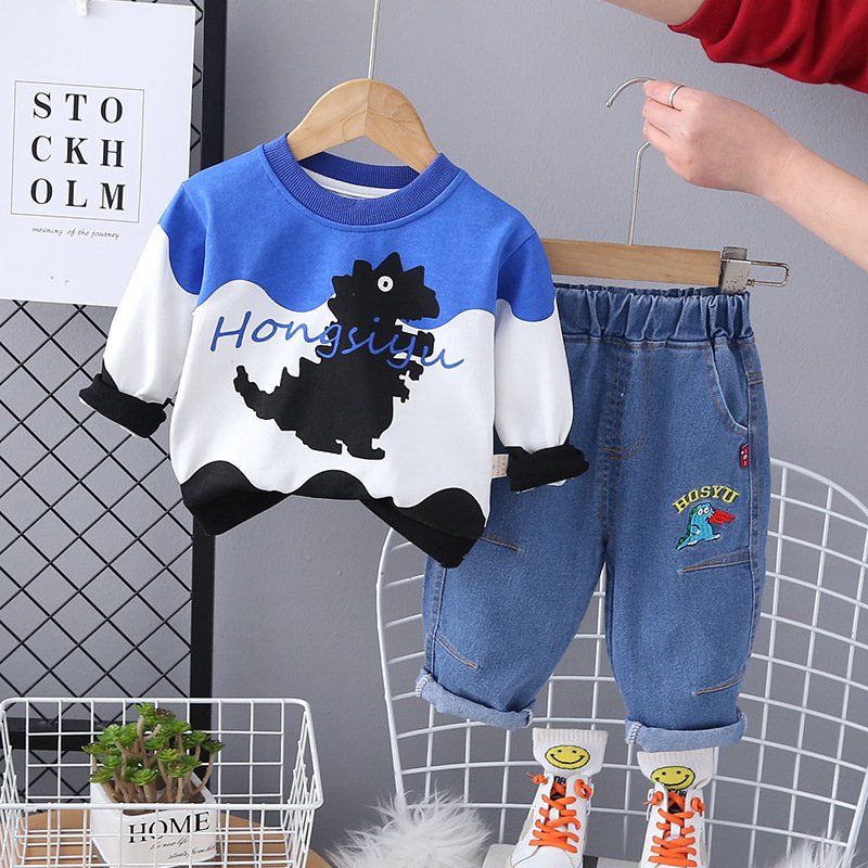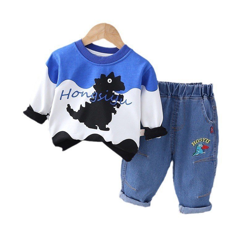Kids Toddler Boys Casual Cartoon Long Sleeve Round Neck Sweatshirts Jeans Set