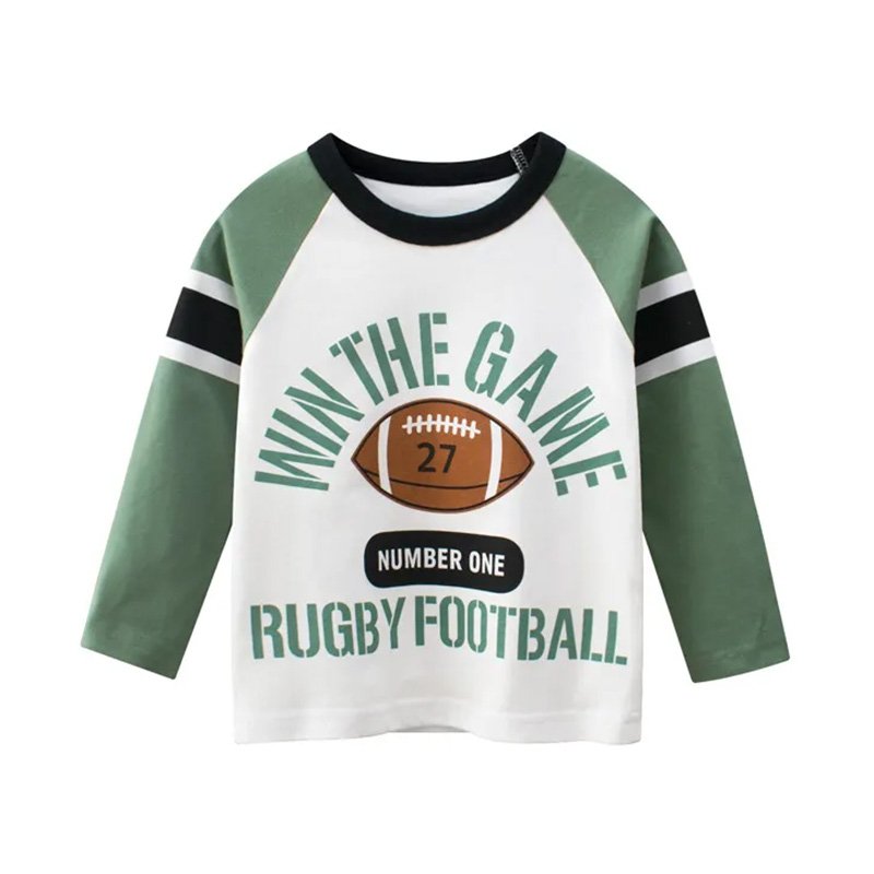 Kids Toddler Boys Casual Cute Alphabet Rugby Print Long Sleeve T-Shirt