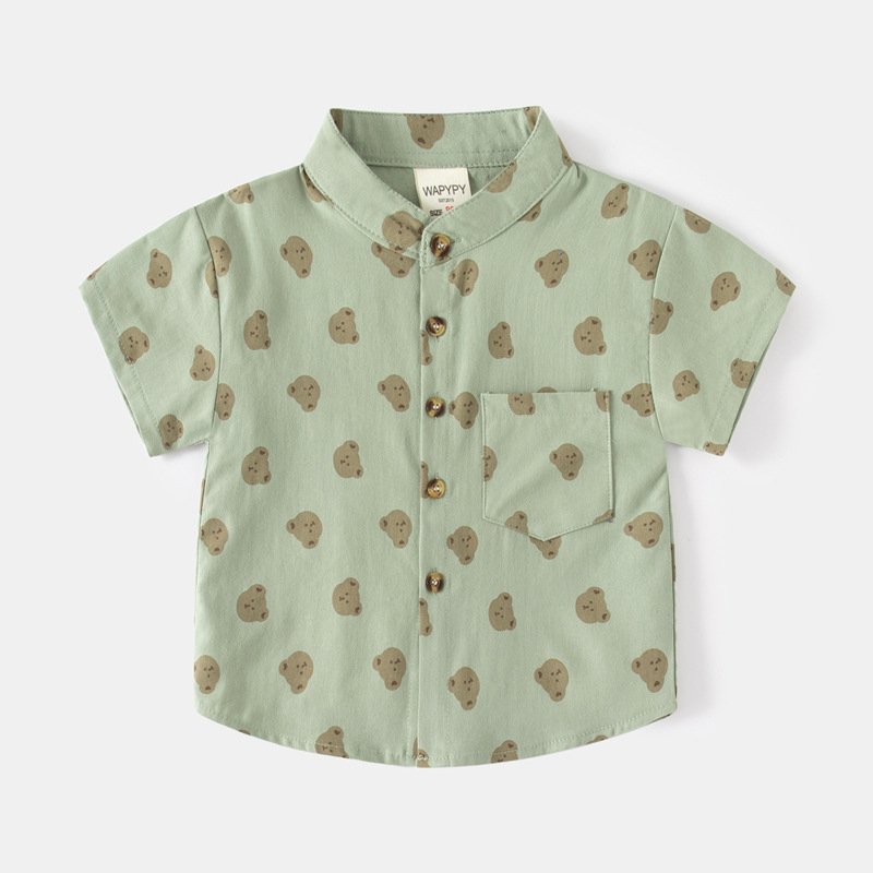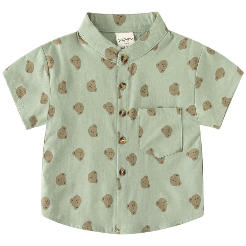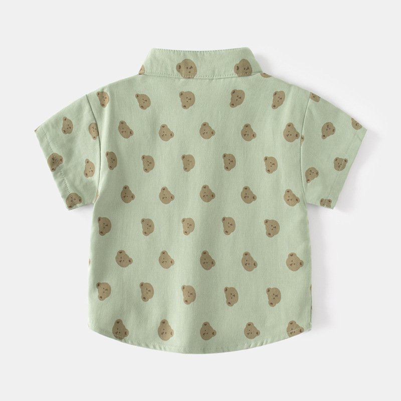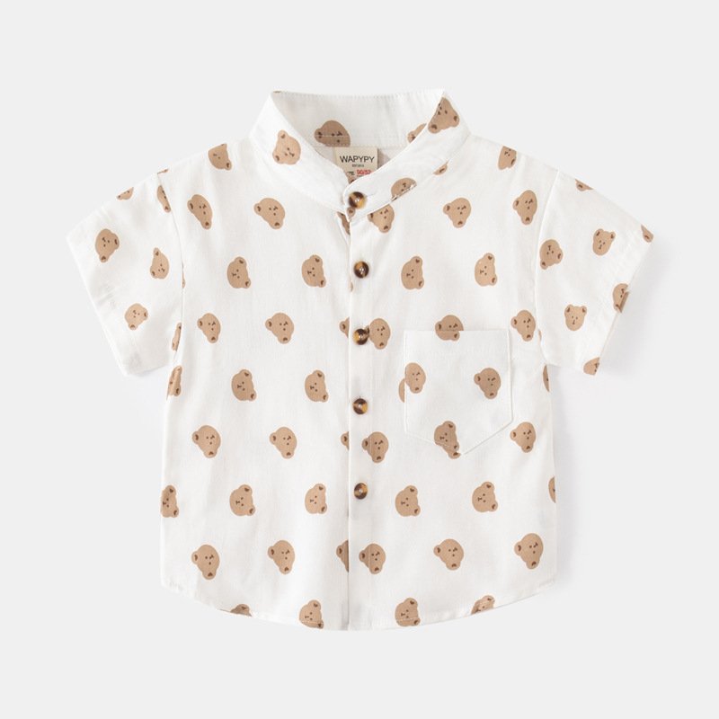 Kids Toddler Boys Casual Cute Cartoon Bear Print Short Sleeve Stand Collar Shirt