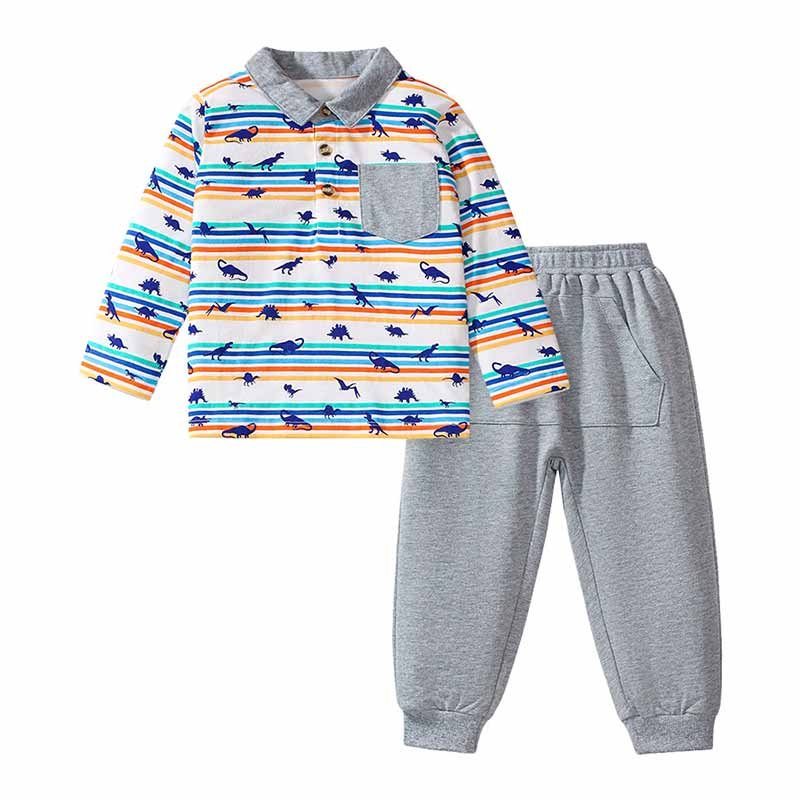 Kids Toddler Boys Casual Cute Cartoon Dinosaur Print Long Sleeve Lapel Shirt Pants Sets
