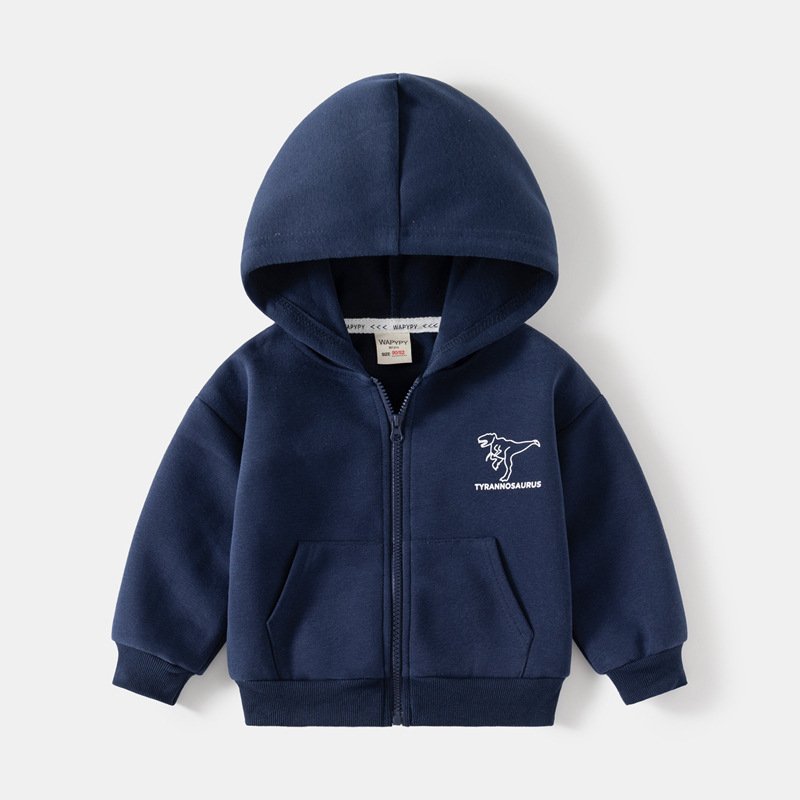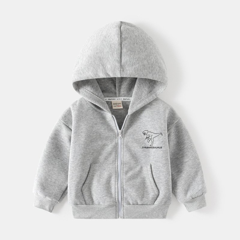 Kids Toddler Boys Casual Cute Cartoon Dinosaur Print Long Sleeve Zipper Hoodies