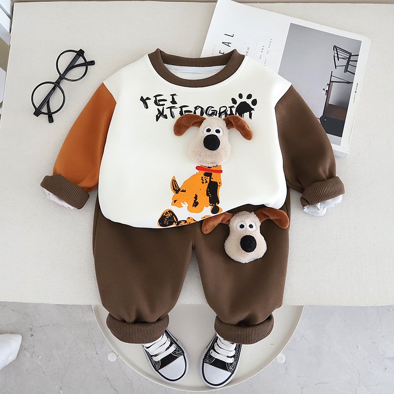 • Long Sleeve Puppy Crewneck Suit Coffee – 2Y (100)