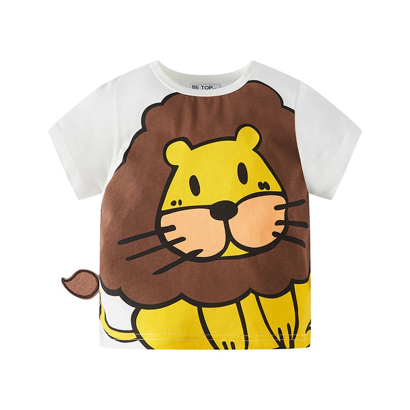 Kids Toddler Boys Casual Cute Cartoon Lion Print Short Sleeve Round Neck T-Shirt
