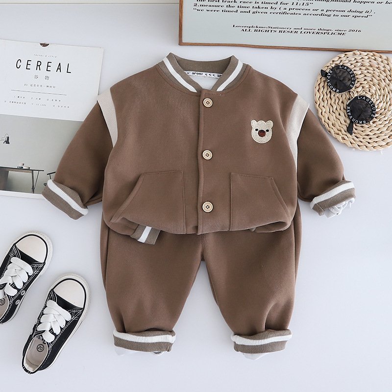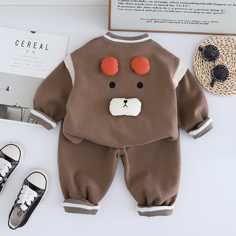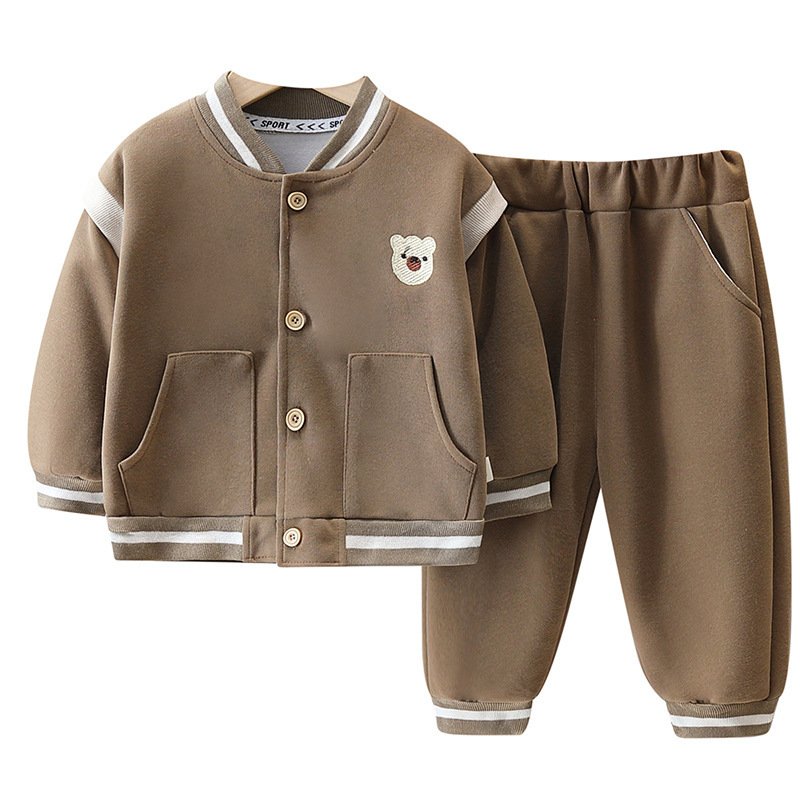 • Long – Sleeved Cute Bear Baseball Suit Brown – 3Y (110)