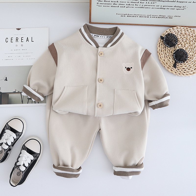 • Long – Sleeved Cute Bear Baseball Suit Beige – 3Y (110)