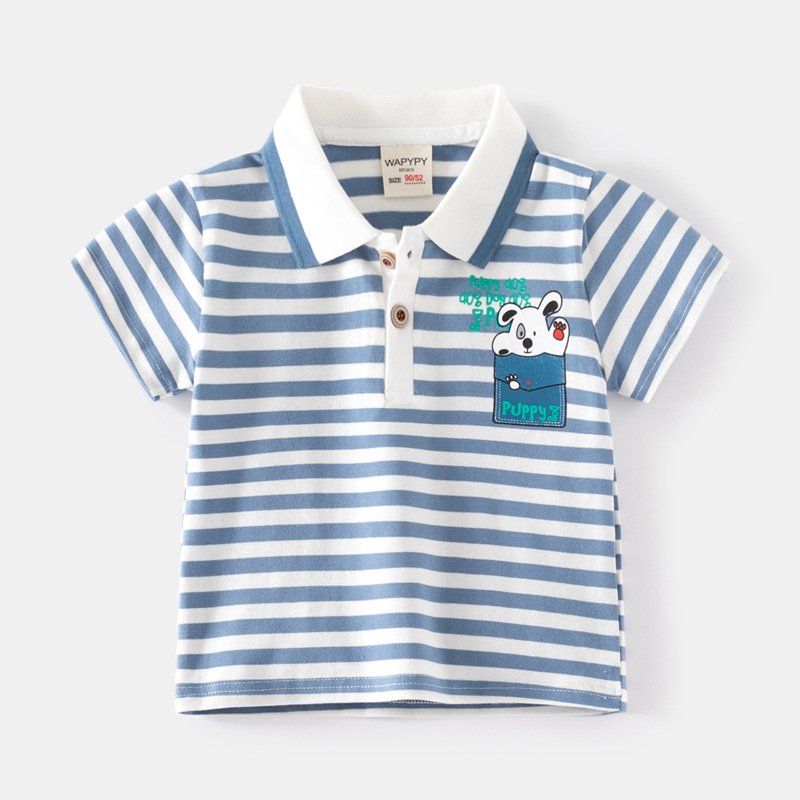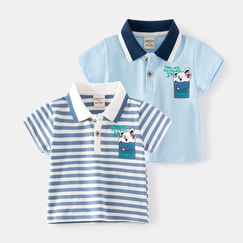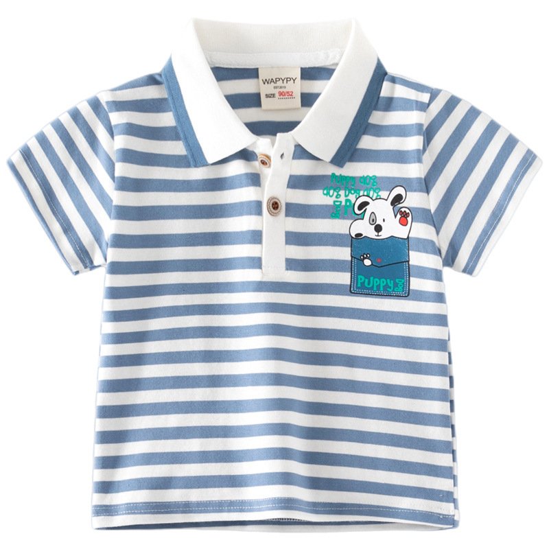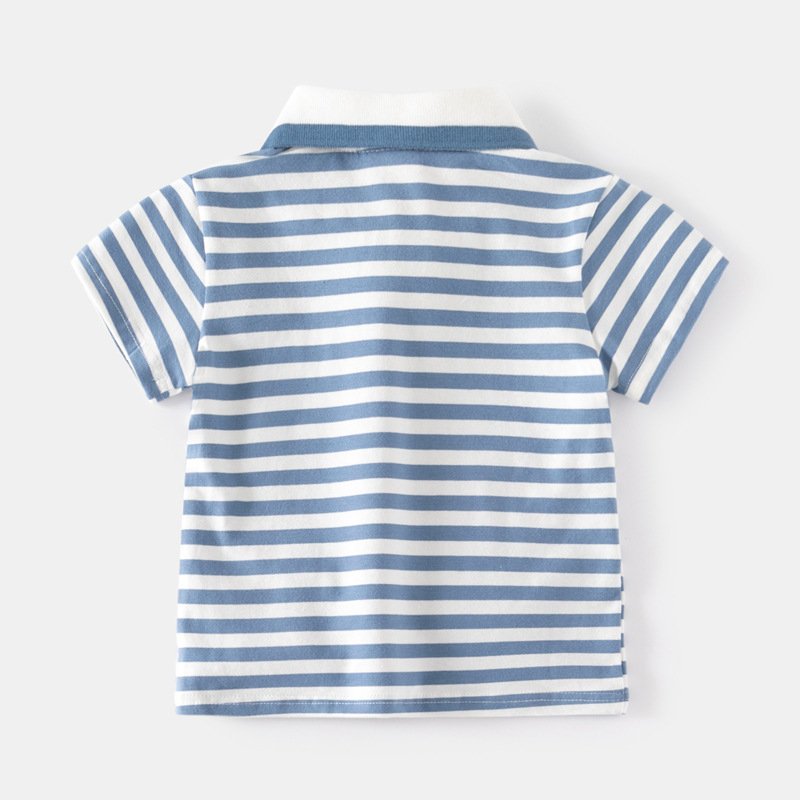 Kids Toddler Boys Casual Cute Cartoon Stripe Print Short Sleeve Lapel POLO Shirt